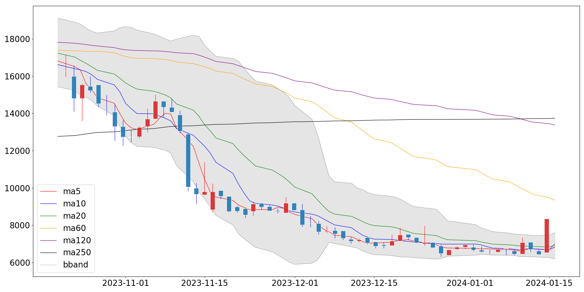 □ 장기 : 현재 종가가 장기(250일) 이동평균값(13,740원)을 하회 하여 장기적 추세 하락 중