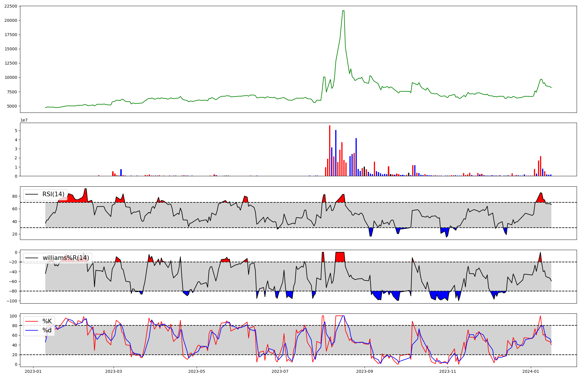 | RSI | Williams %R | stochastic(%K) | |