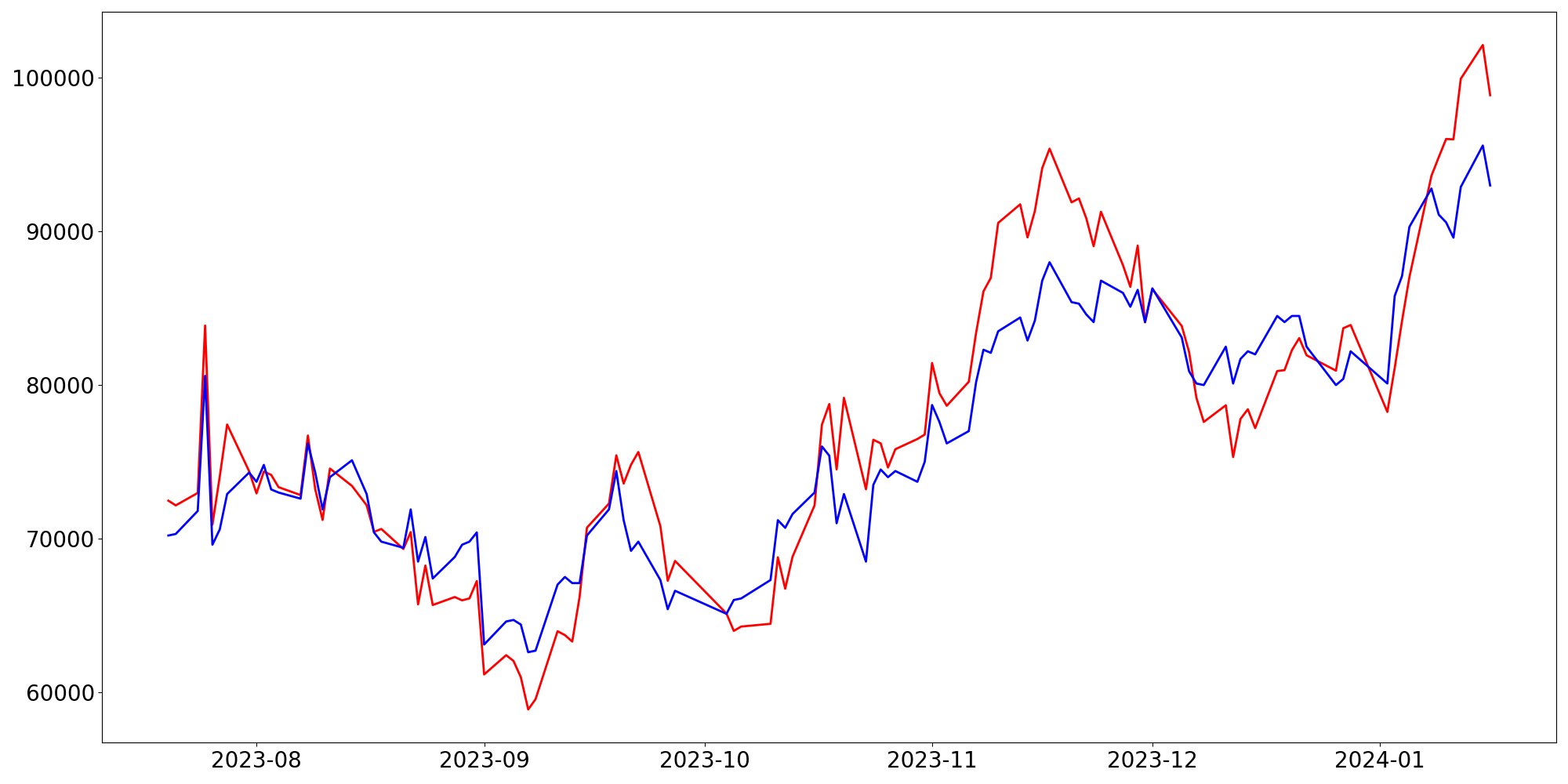[ - : 실제값(종가) / - : 예측값(종가) ]