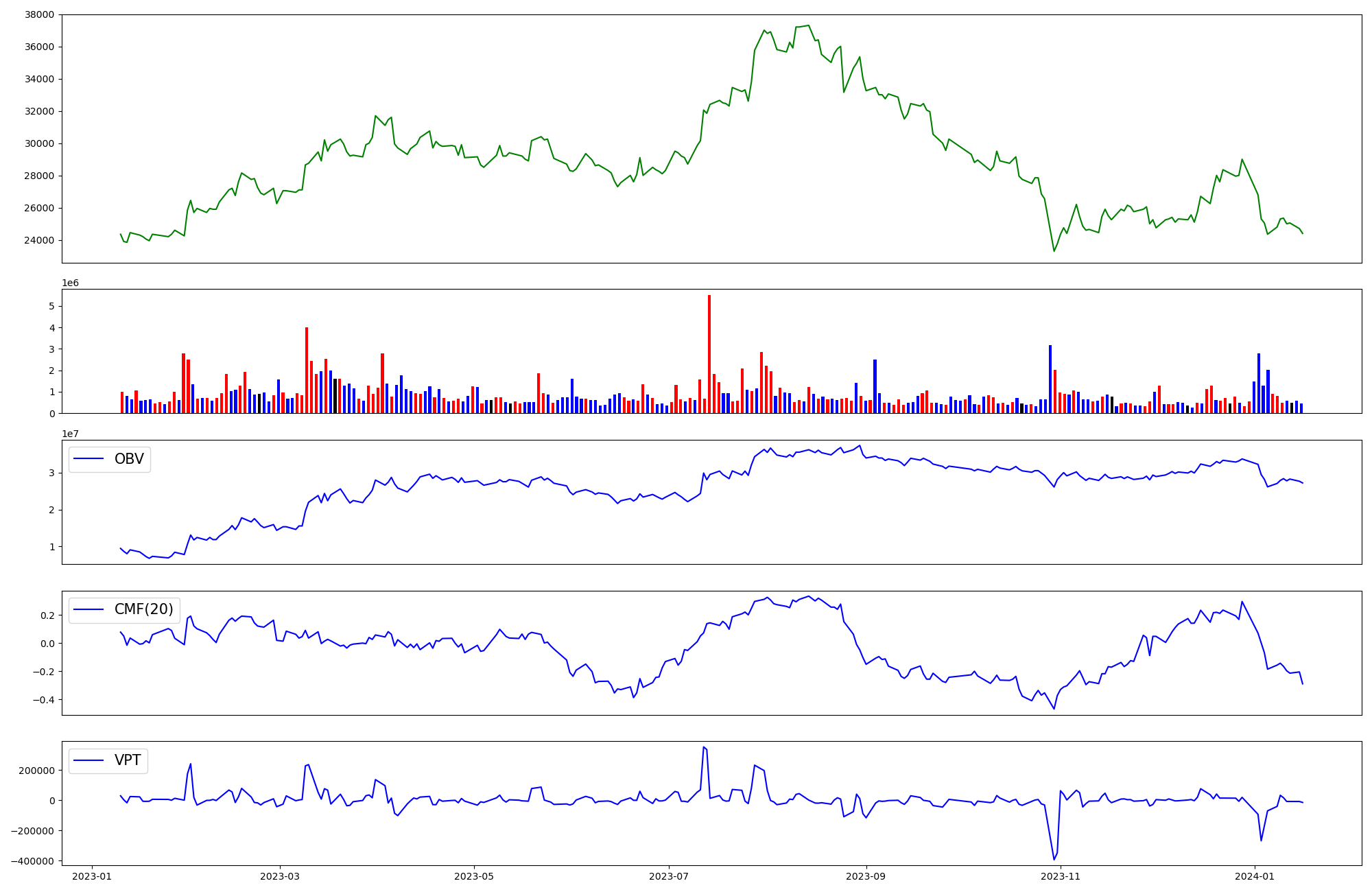 | OBV | CMF | VPT | |