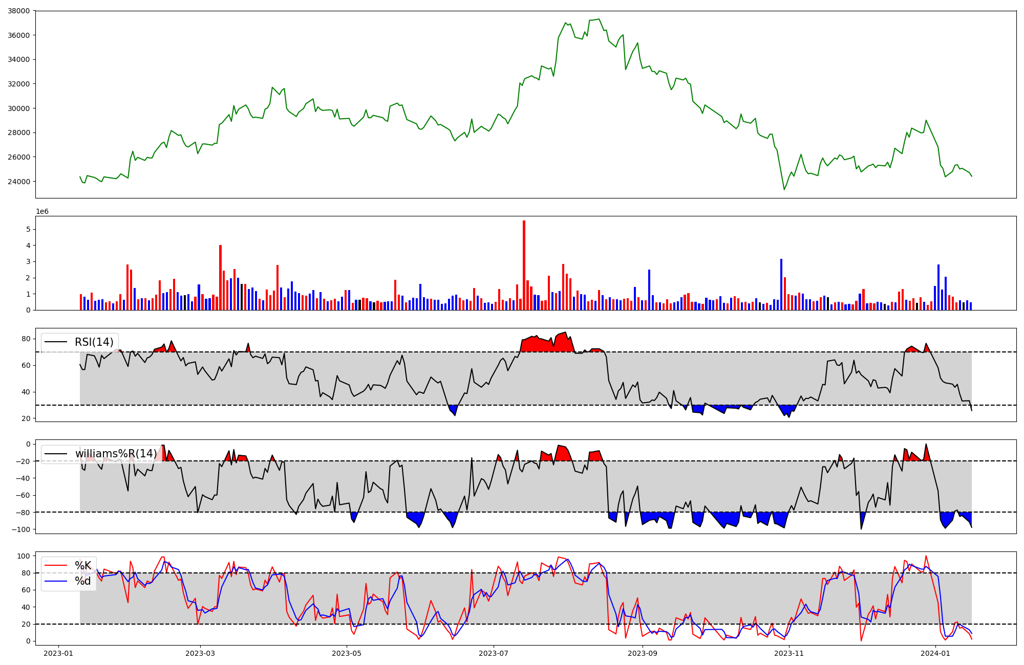 | RSI | Williams %R | stochastic(%K) | |
