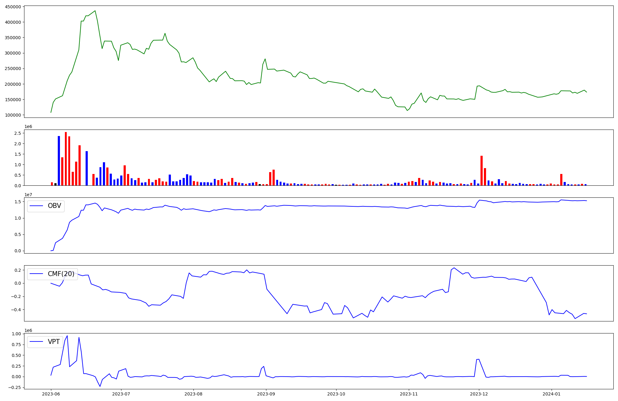 | OBV | CMF | VPT | |