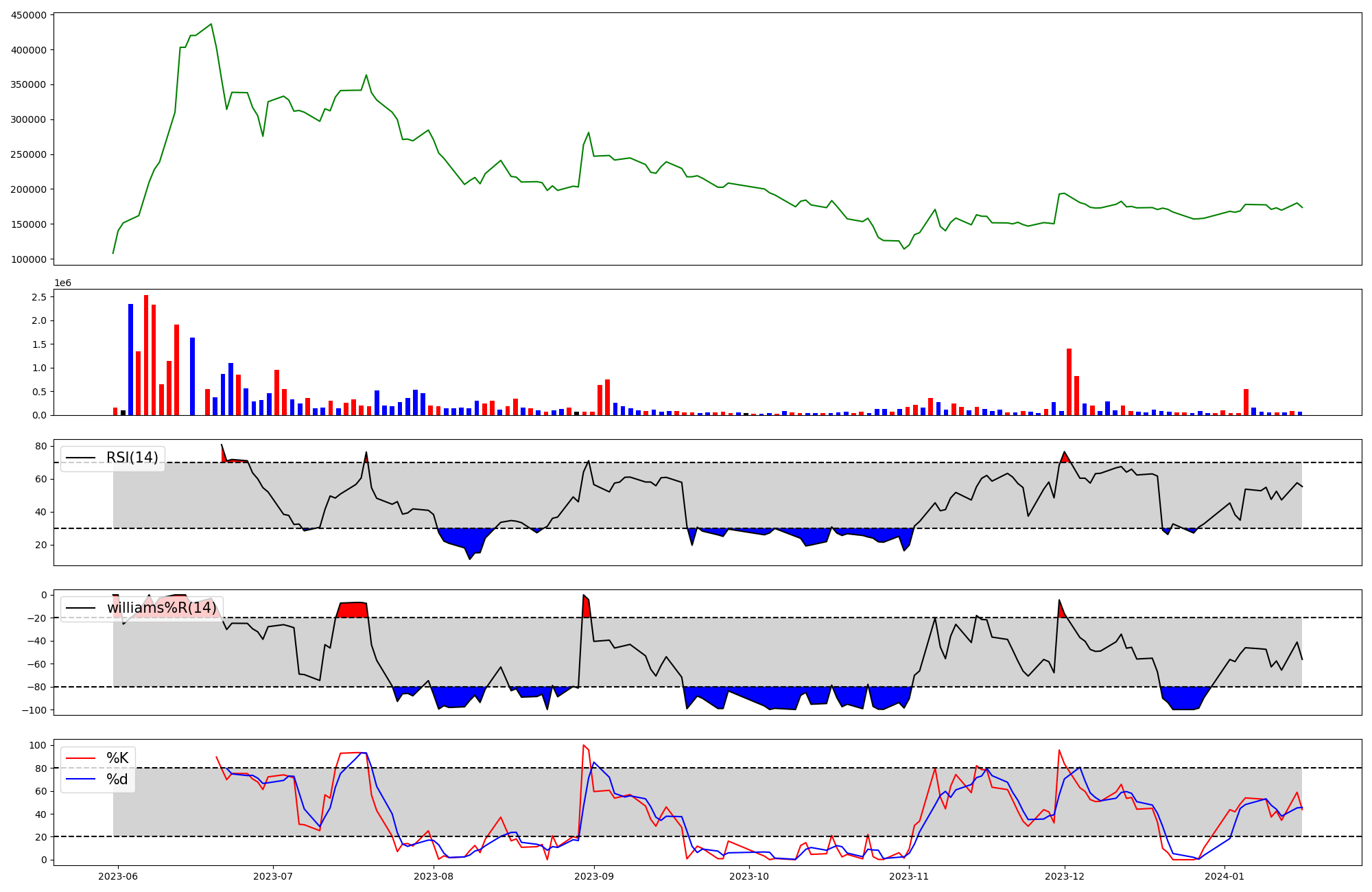| RSI | Williams %R | stochastic(%K) | |
