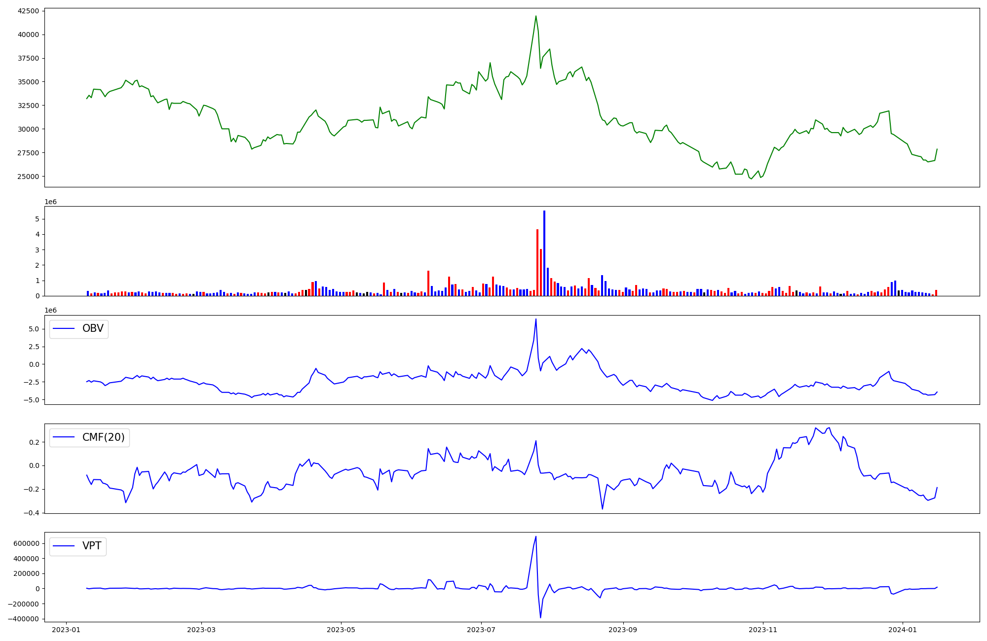 | OBV | CMF | VPT | |