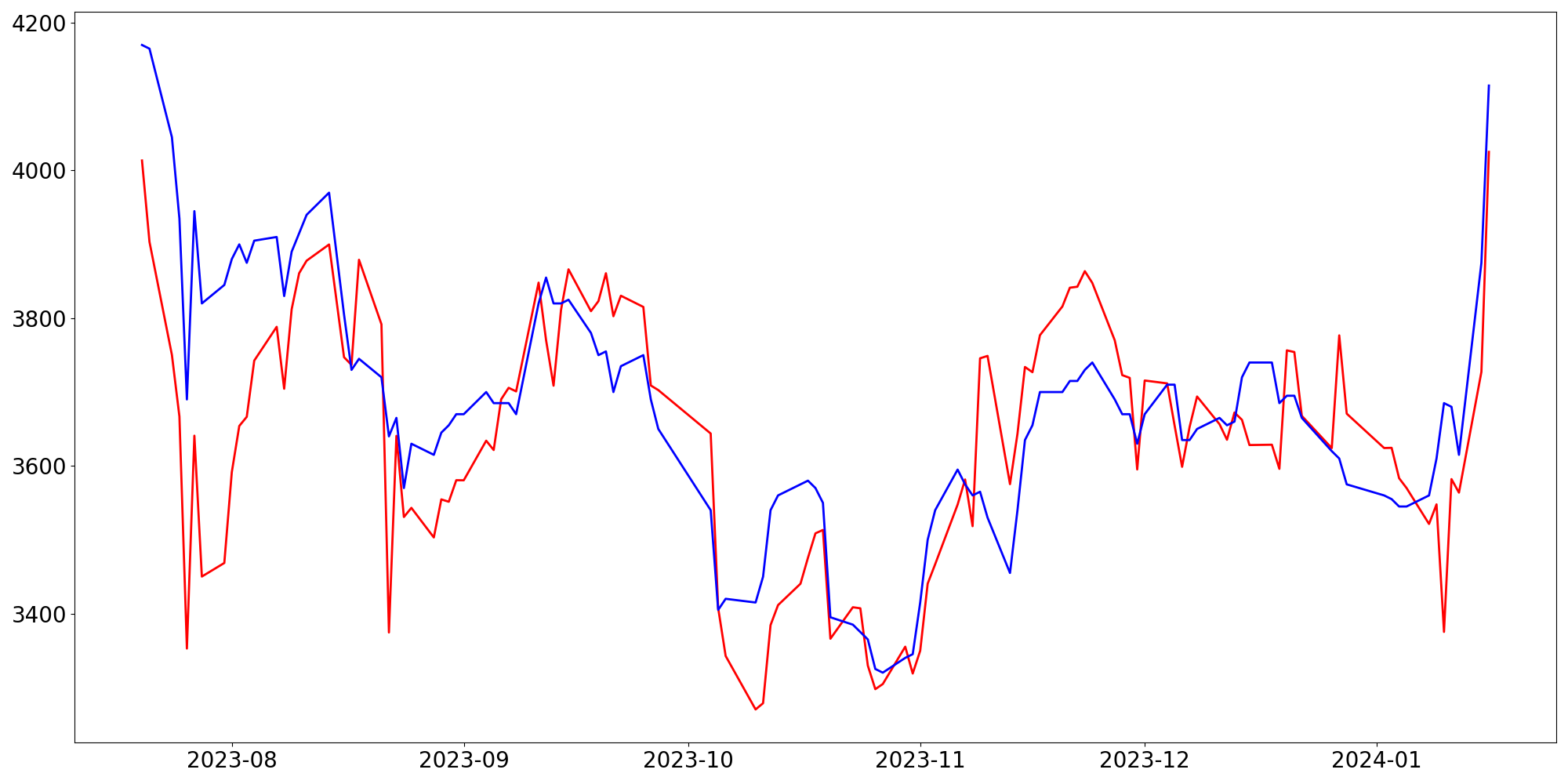 [ - : 실제값(종가) / - : 예측값(종가) ]
