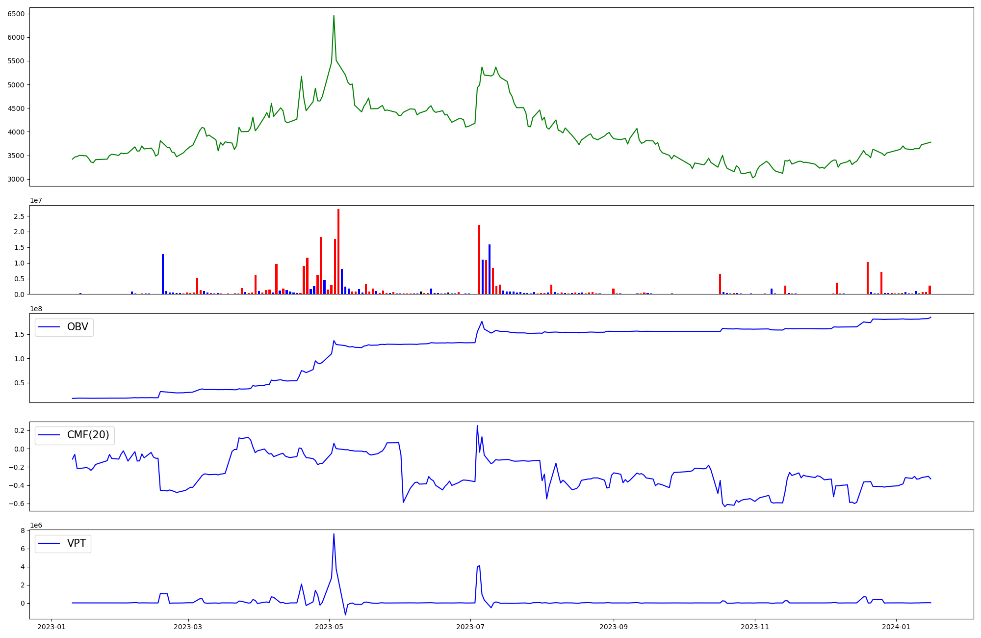 | OBV | CMF | VPT | |