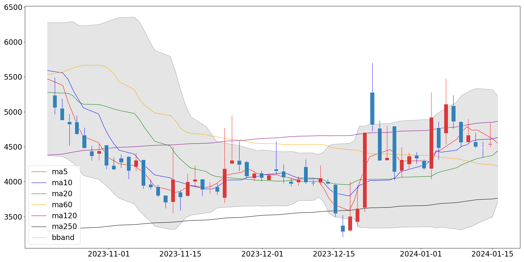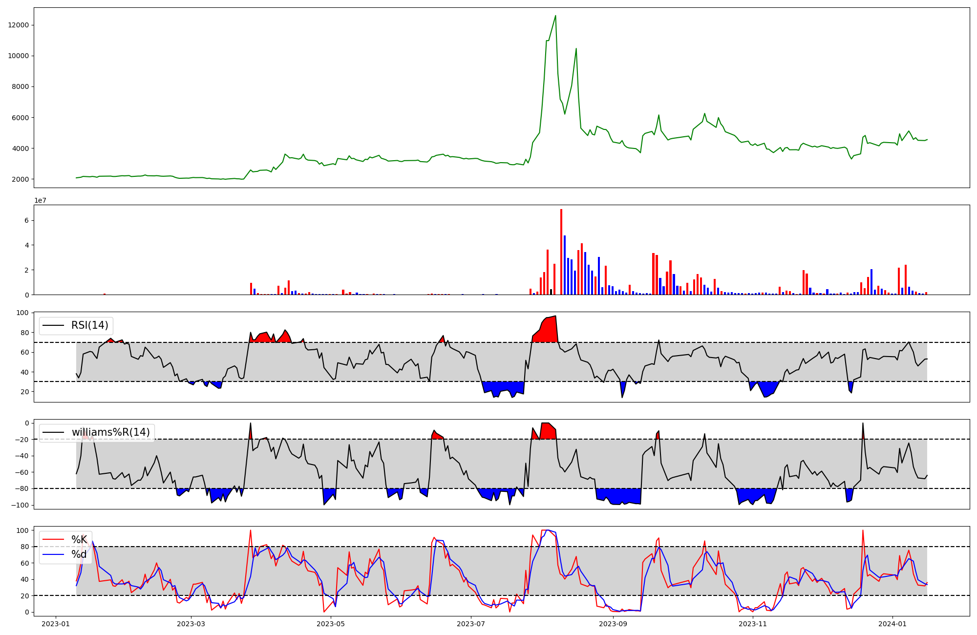 □ 중기 : 현재 종가가 중기(60일) 이동평균값(4,227원)을 상회 하여 중기적 추세 상승 중
