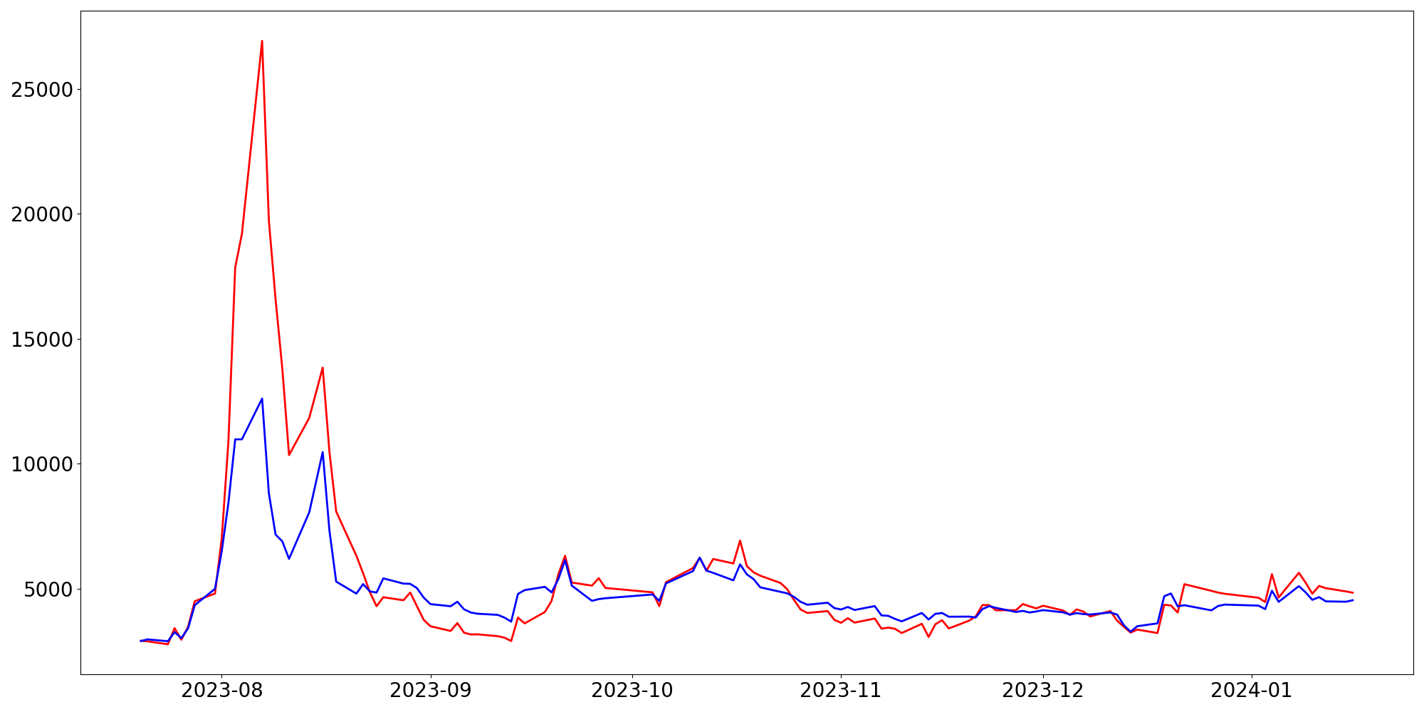 [ - : 실제값(종가) / - : 예측값(종가) ]
