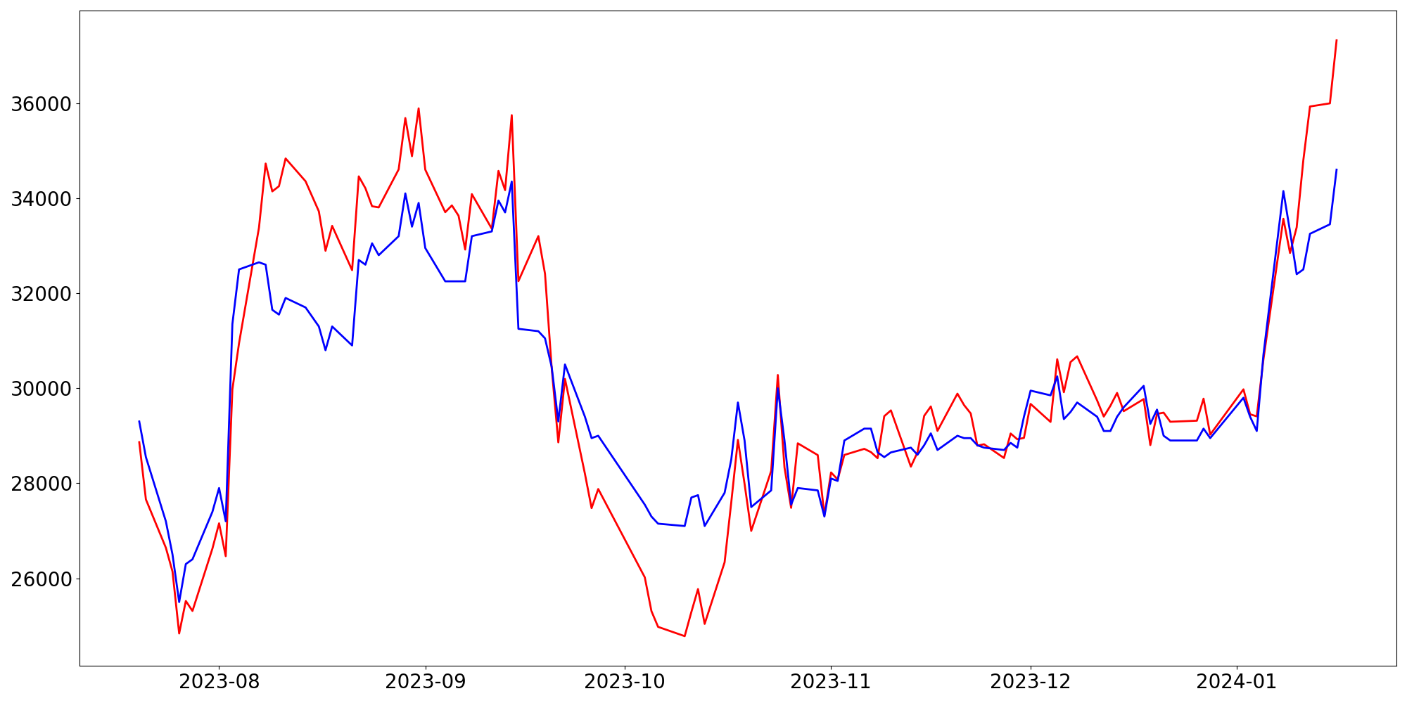 [ - : 실제값(종가) / - : 예측값(종가) ]
