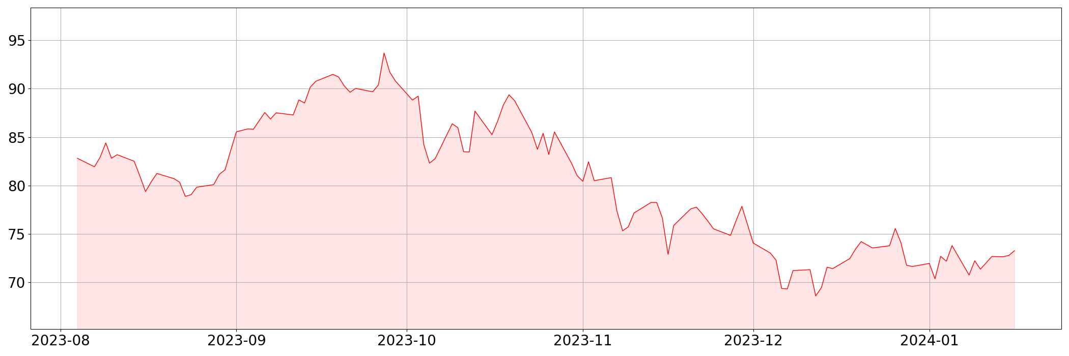 | 40일전 | 77.10 | -0.67 | -0.86% |