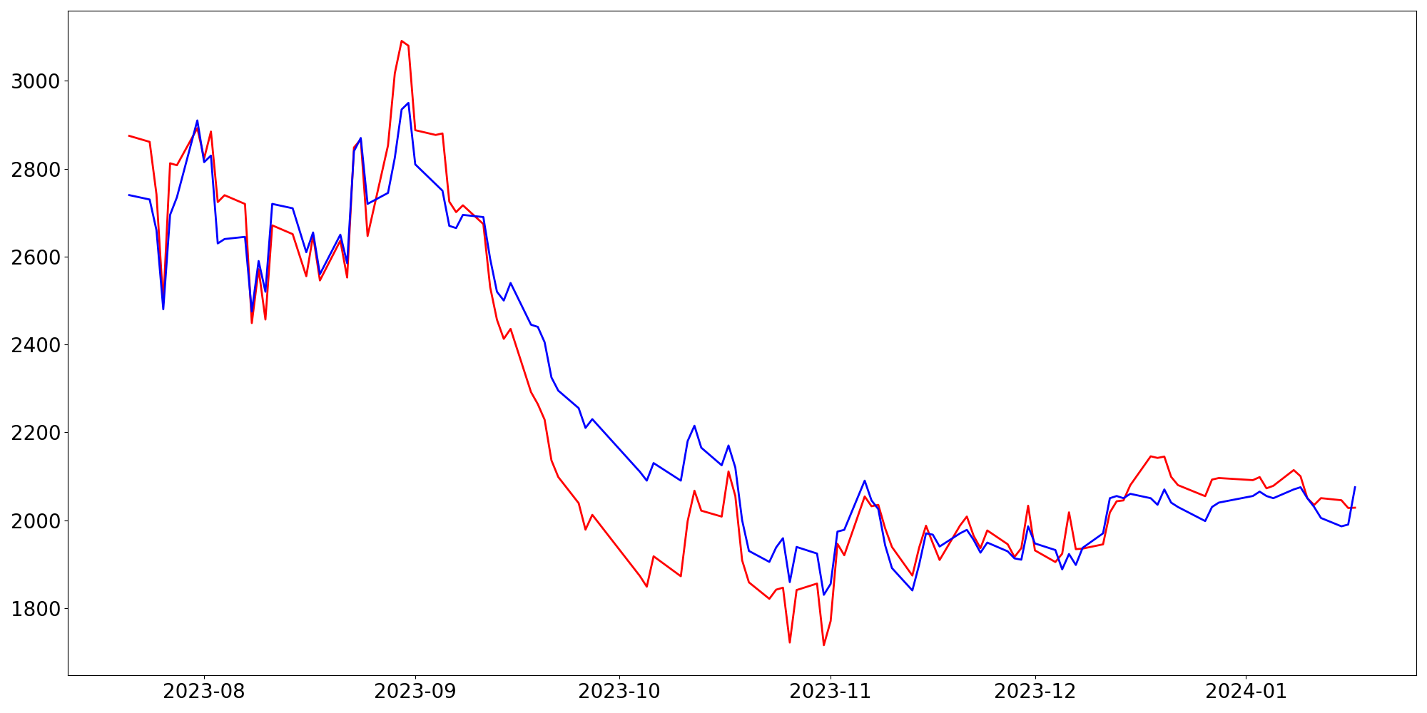 [ - : 실제값(종가) / - : 예측값(종가) ]