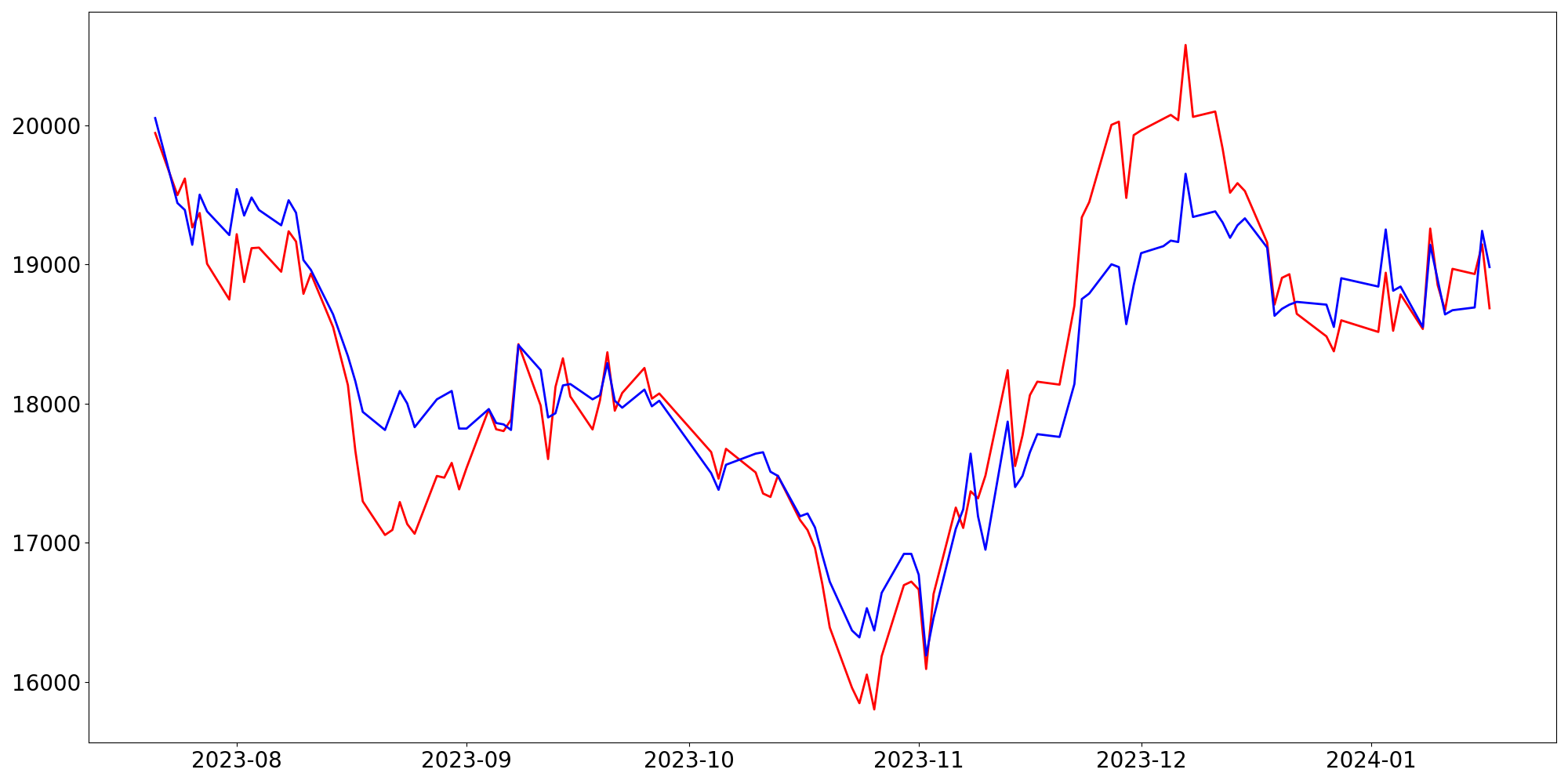 [ - : 실제값(종가) / - : 예측값(종가) ]