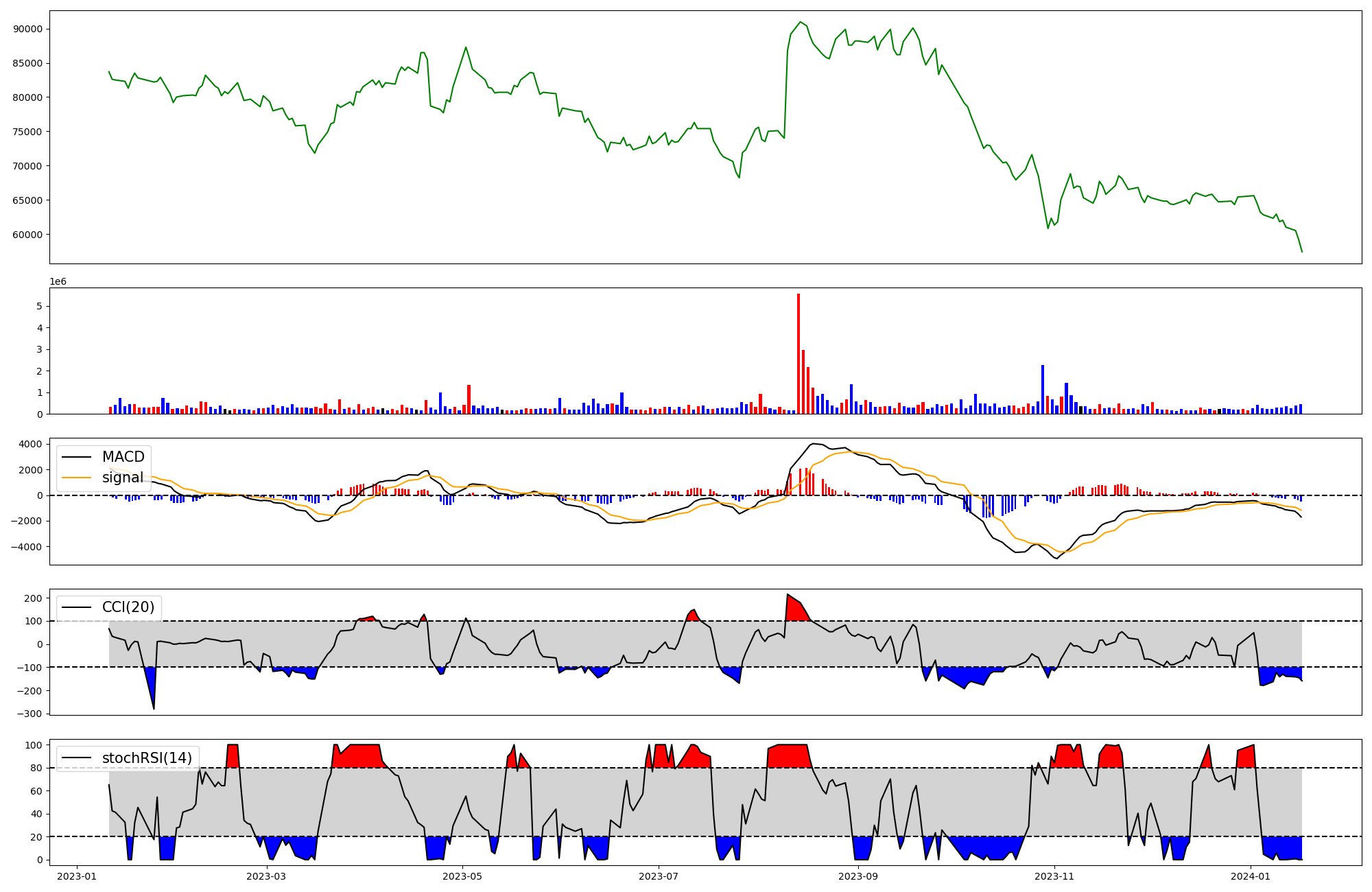 □ 중기 : 현재 종가가 중기(60일) 이동평균값(65,085원)을 하회 하여 중기적 추세 하락 중