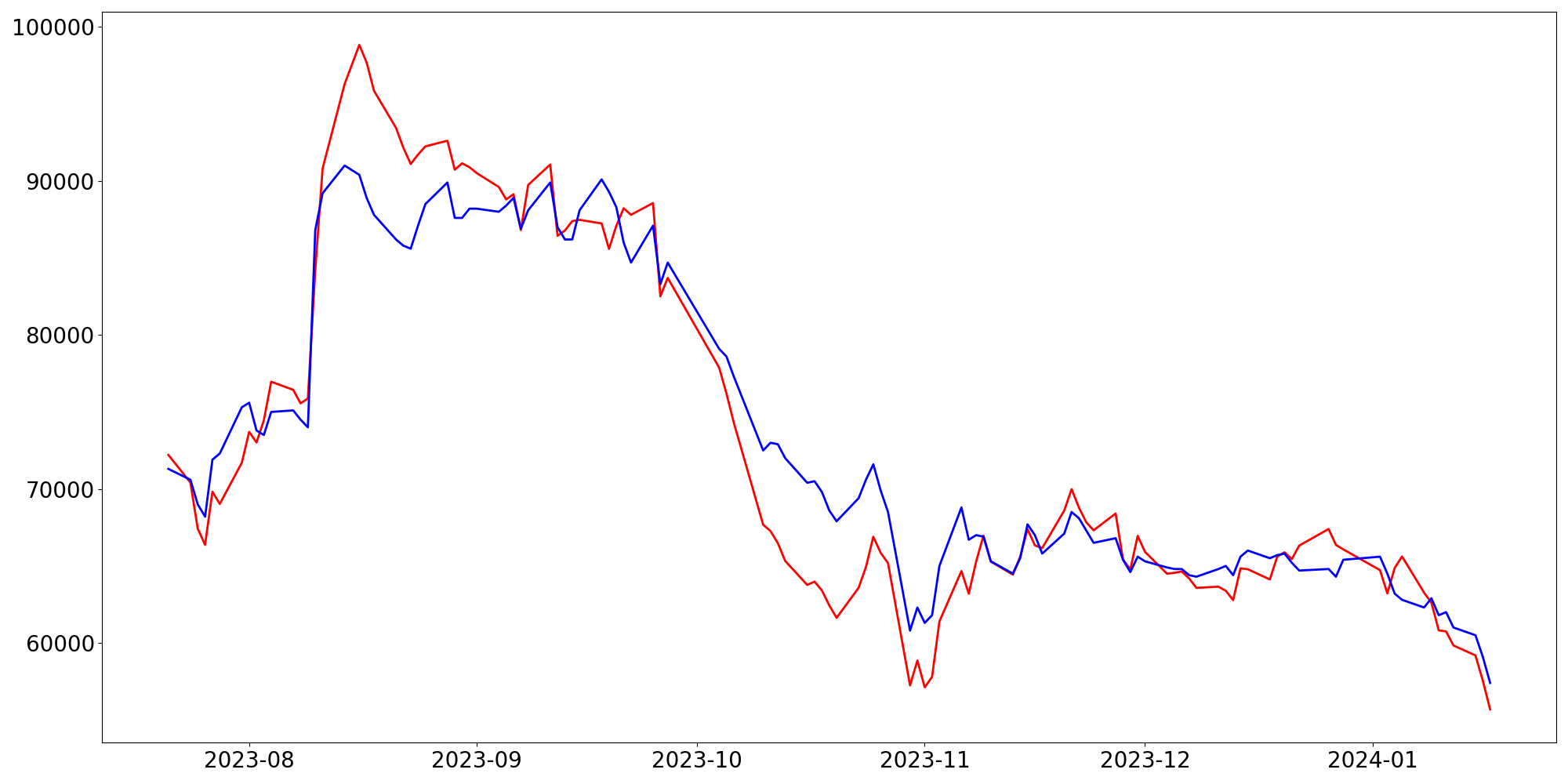 [ - : 실제값(종가) / - : 예측값(종가) ]