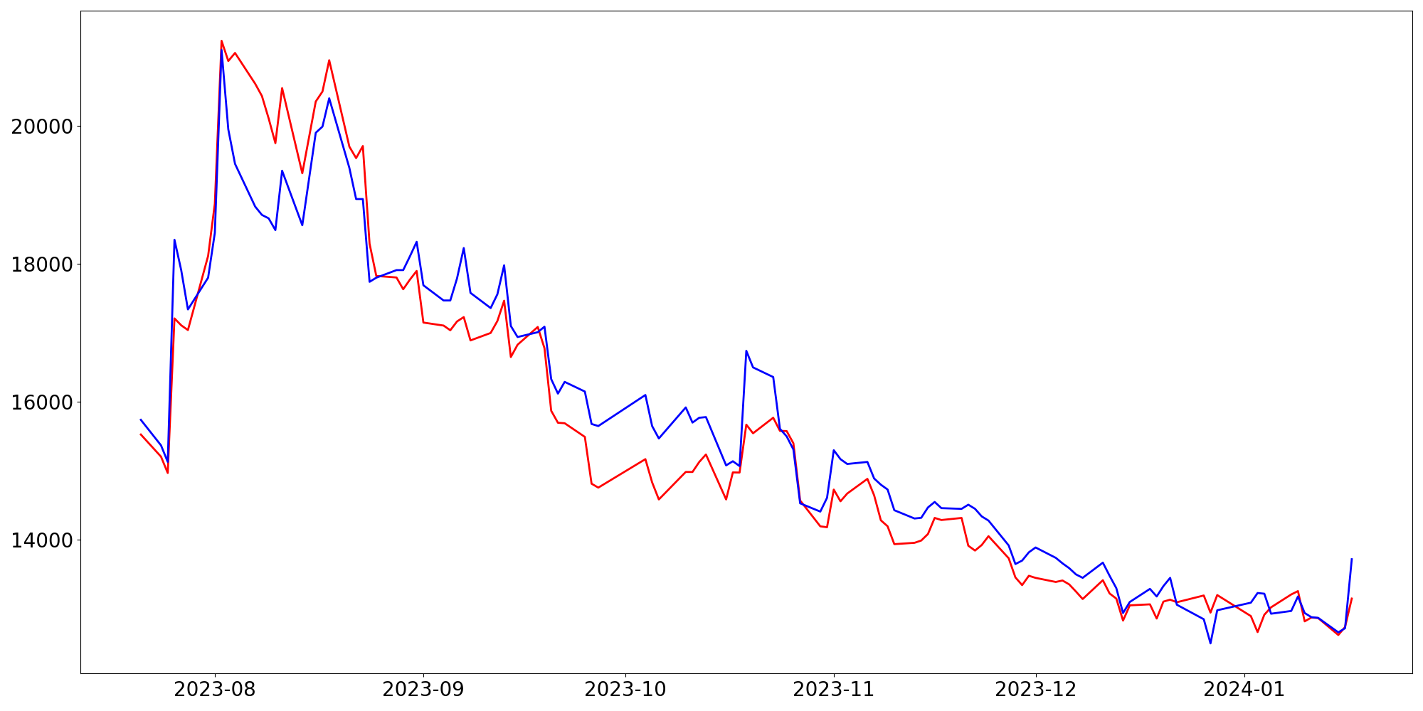 [ - : 실제값(종가) / - : 예측값(종가) ]