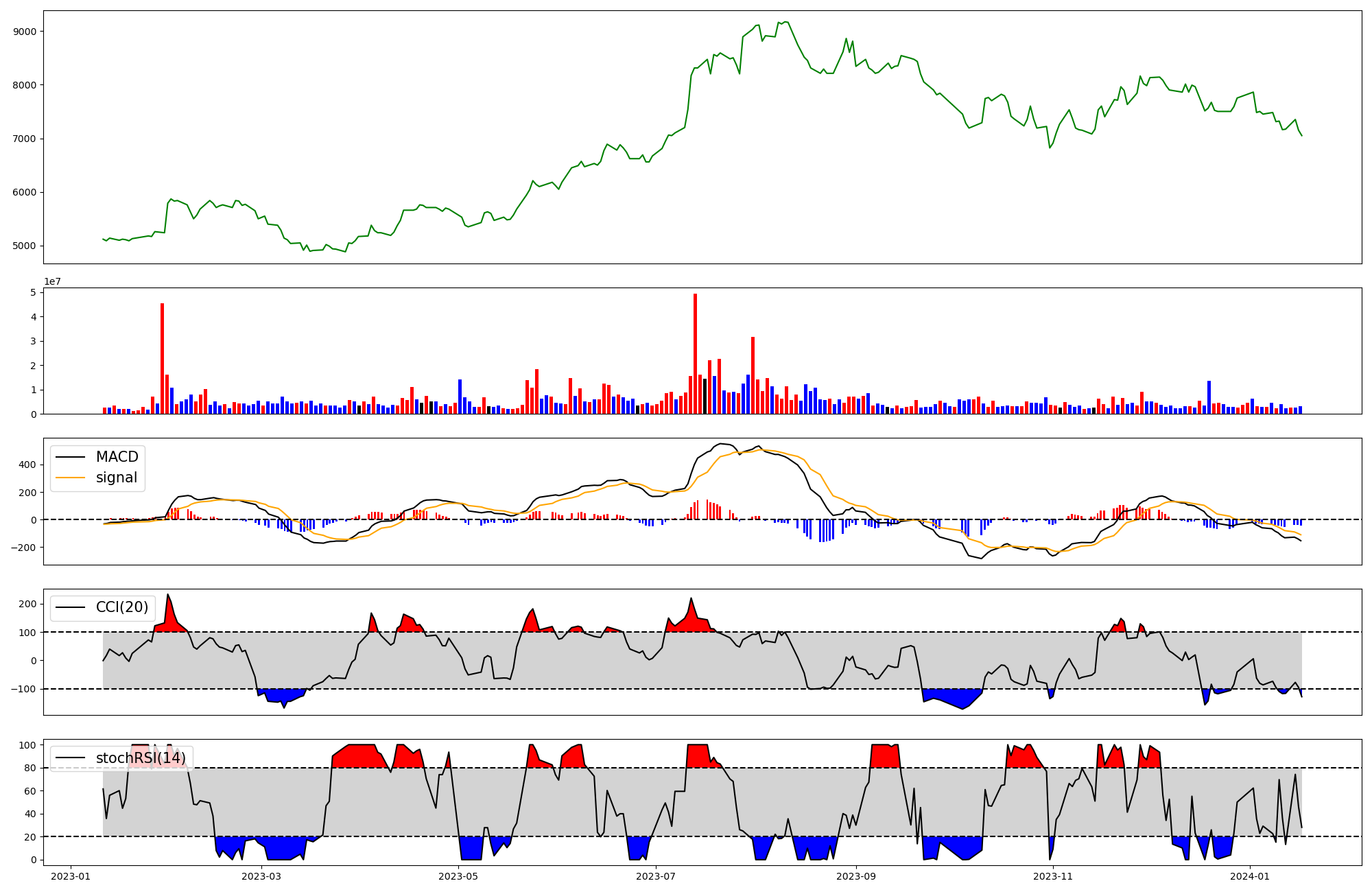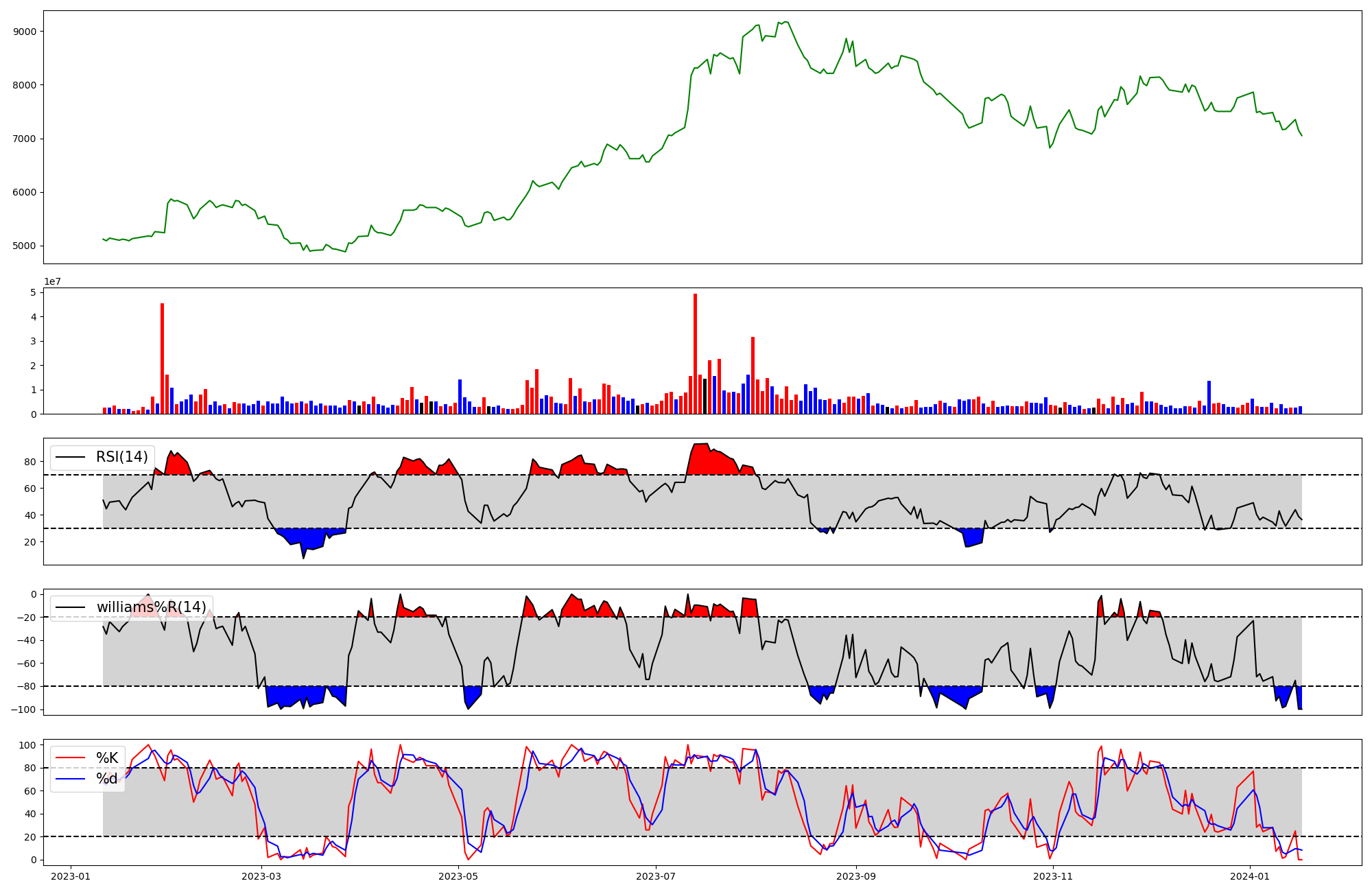 □ 오늘의 종가 : 7,050 (-100, -1.40%)