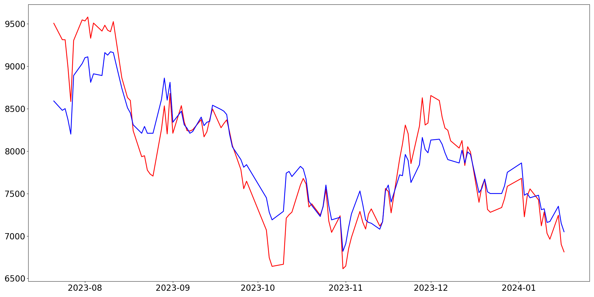 [ - : 실제값(종가) / - : 예측값(종가) ]
