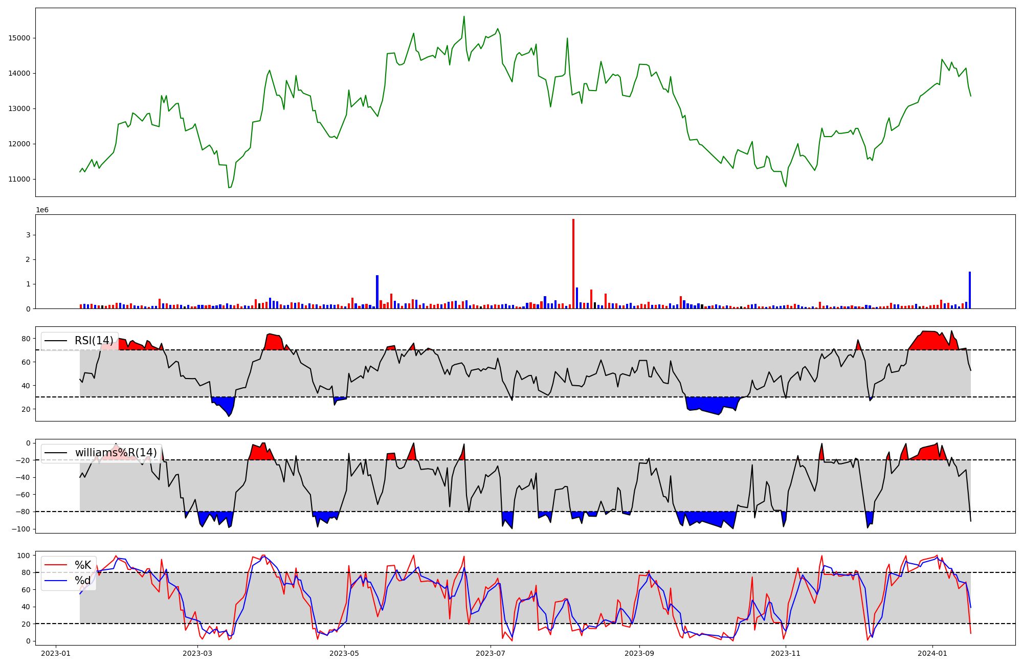 | RSI | Williams %R | stochastic(%K) | |