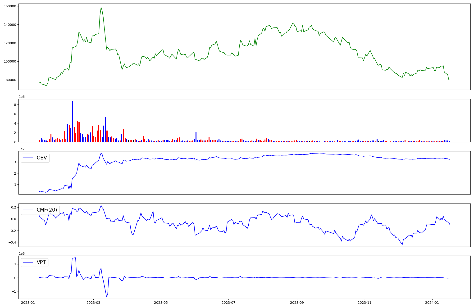 | OBV | CMF | VPT | |