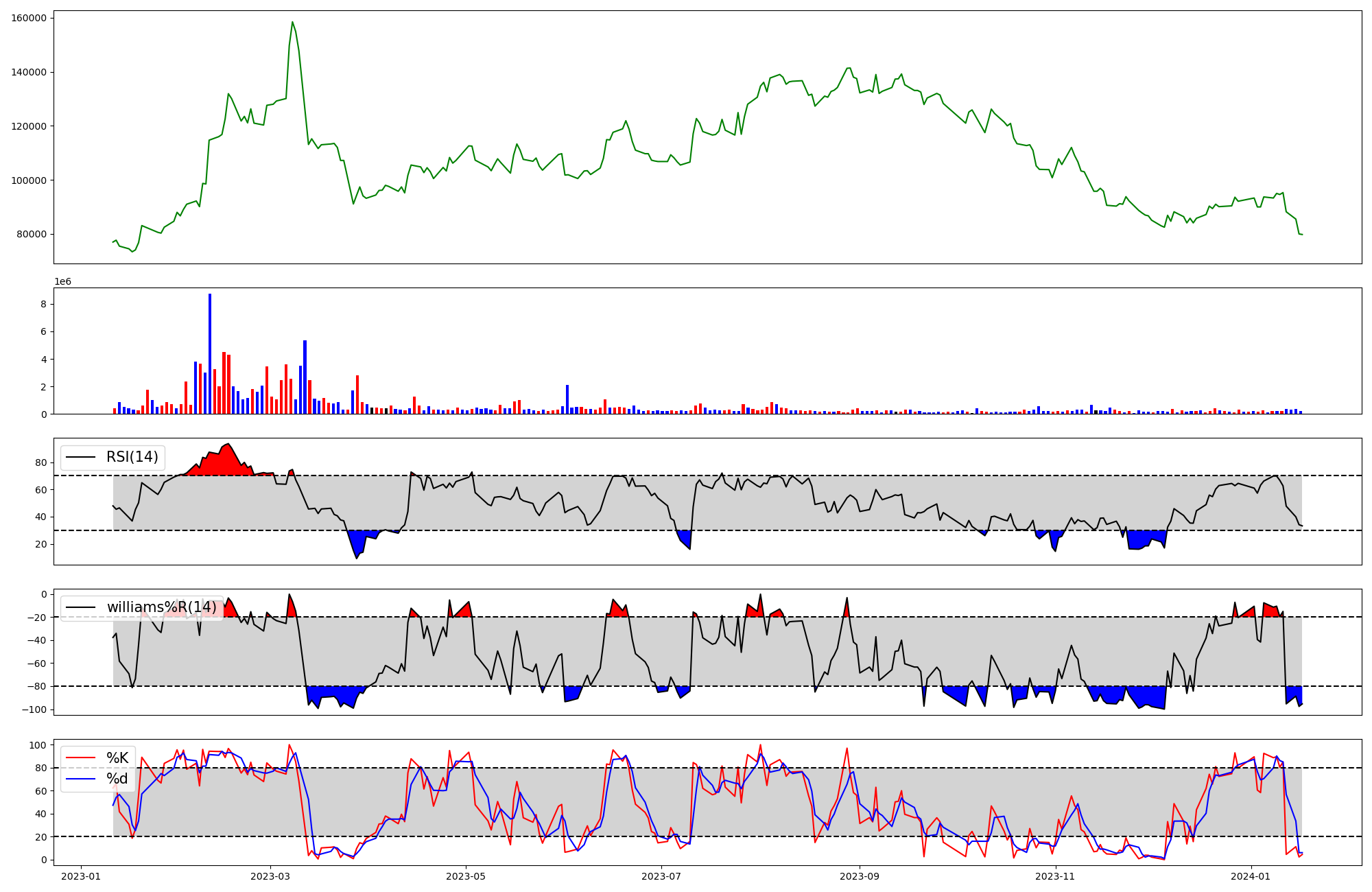 | RSI | Williams %R | stochastic(%K) | |