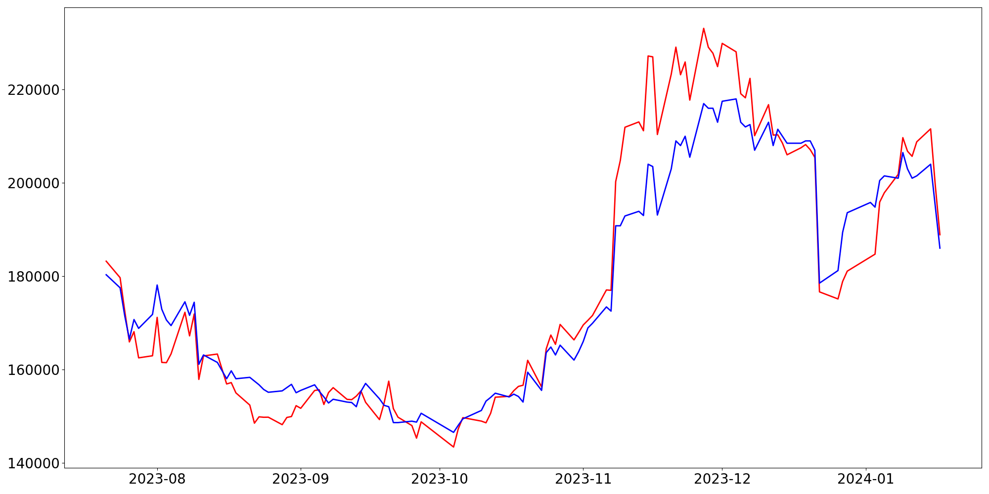 [ - : 실제값(종가) / - : 예측값(종가) ]