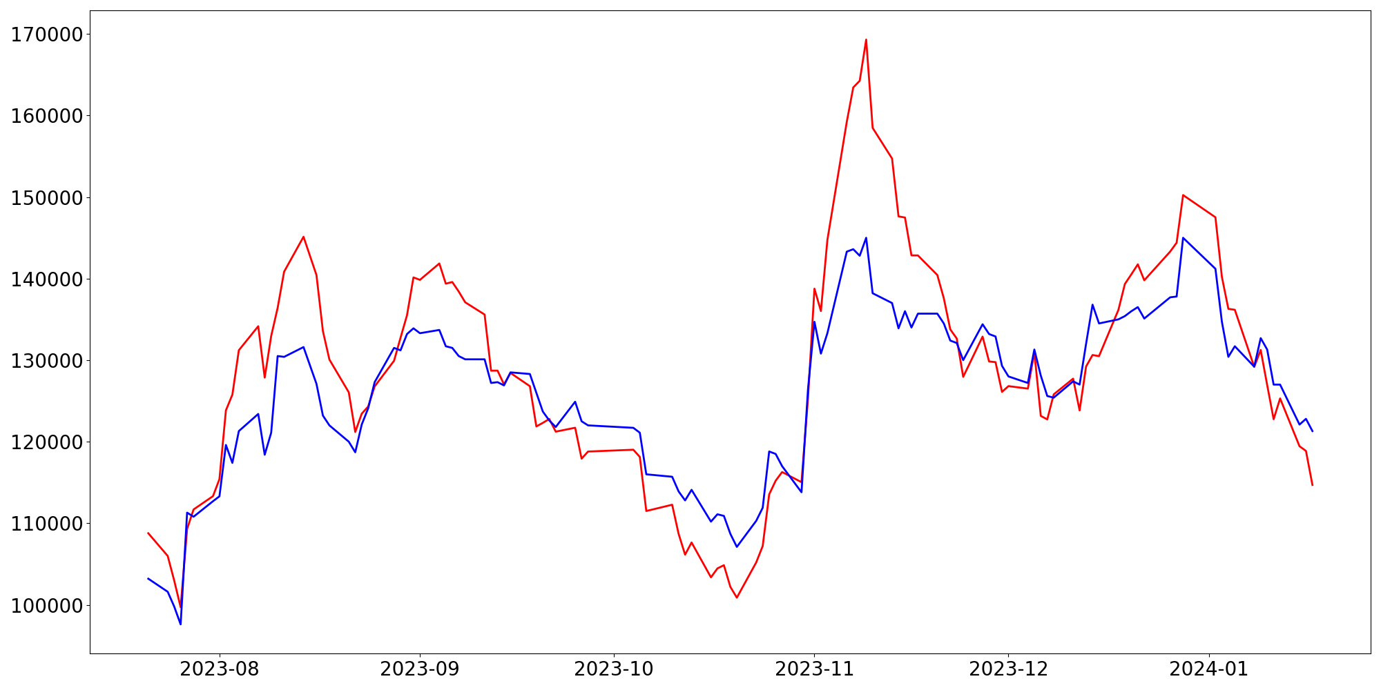 [ - : 실제값(종가) / - : 예측값(종가) ]