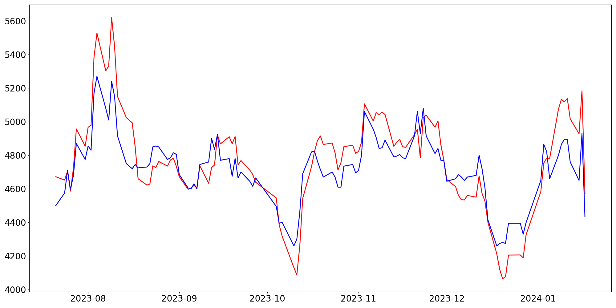 [ - : 실제값(종가) / - : 예측값(종가) ]
