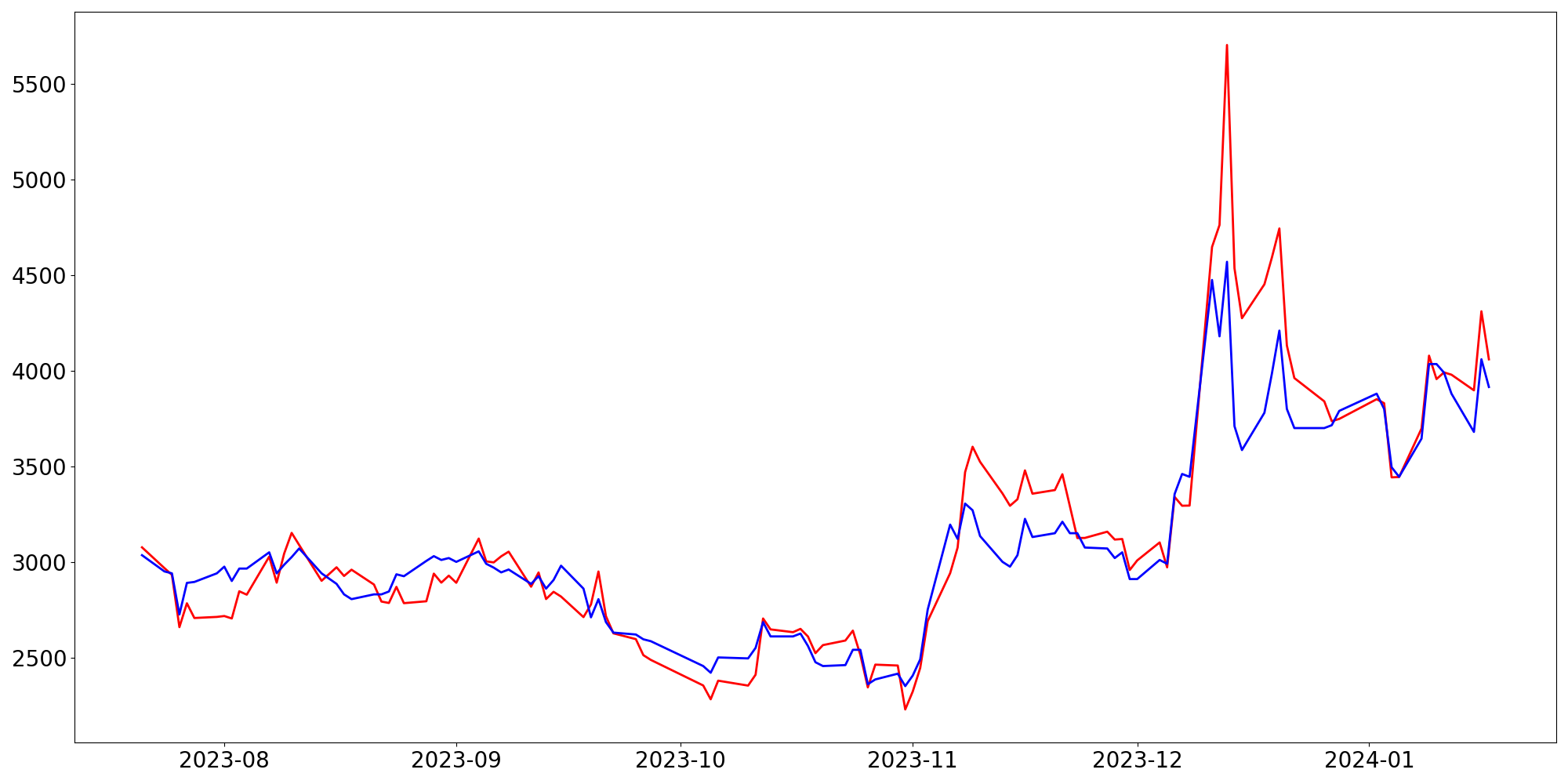 [ - : 실제값(종가) / - : 예측값(종가) ]