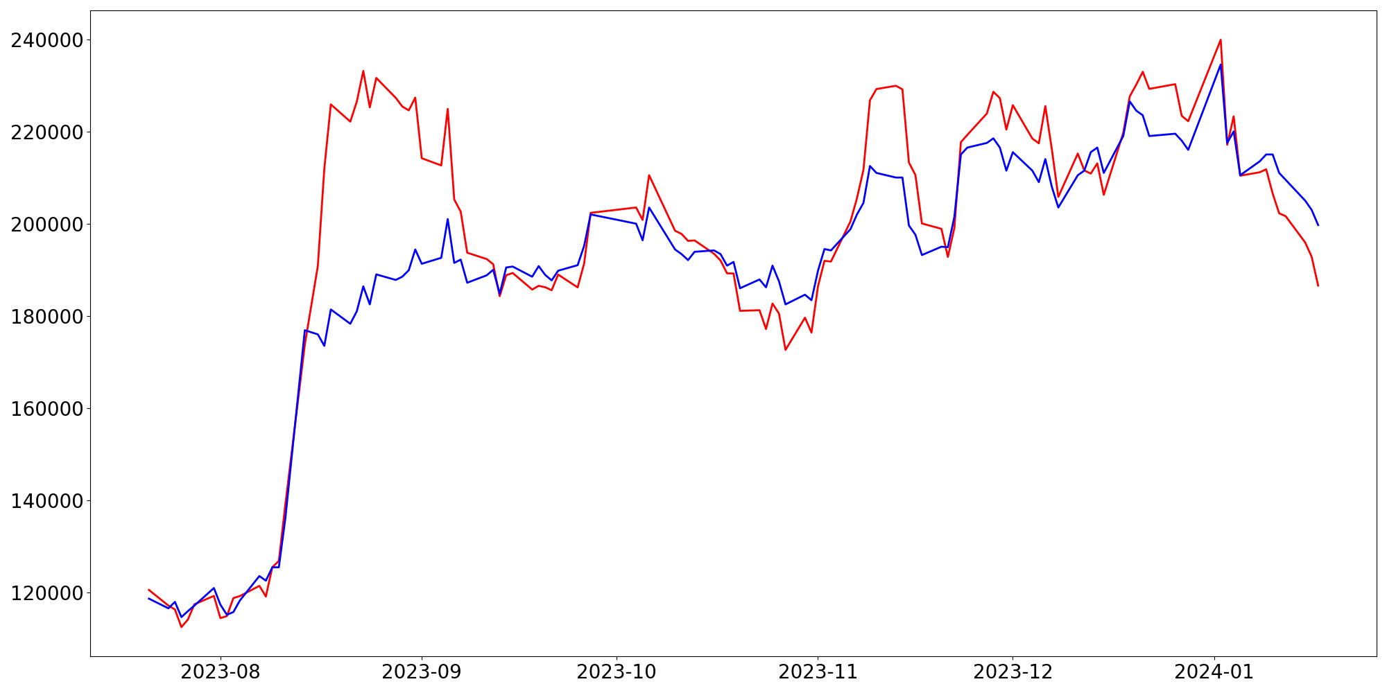 [ - : 실제값(종가) / - : 예측값(종가) ]