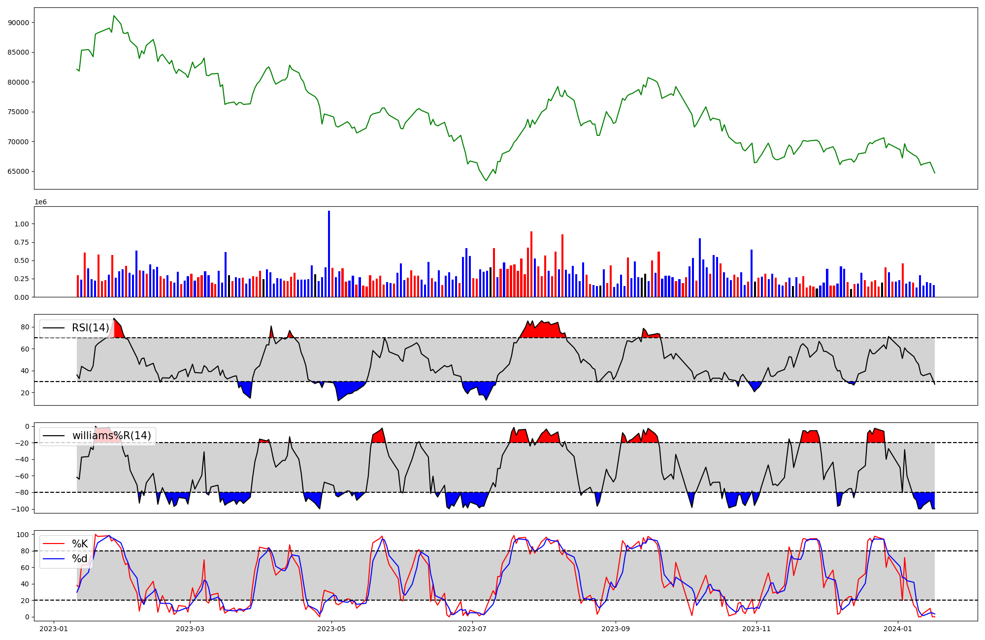| RSI | Williams %R | stochastic(%K) | |
