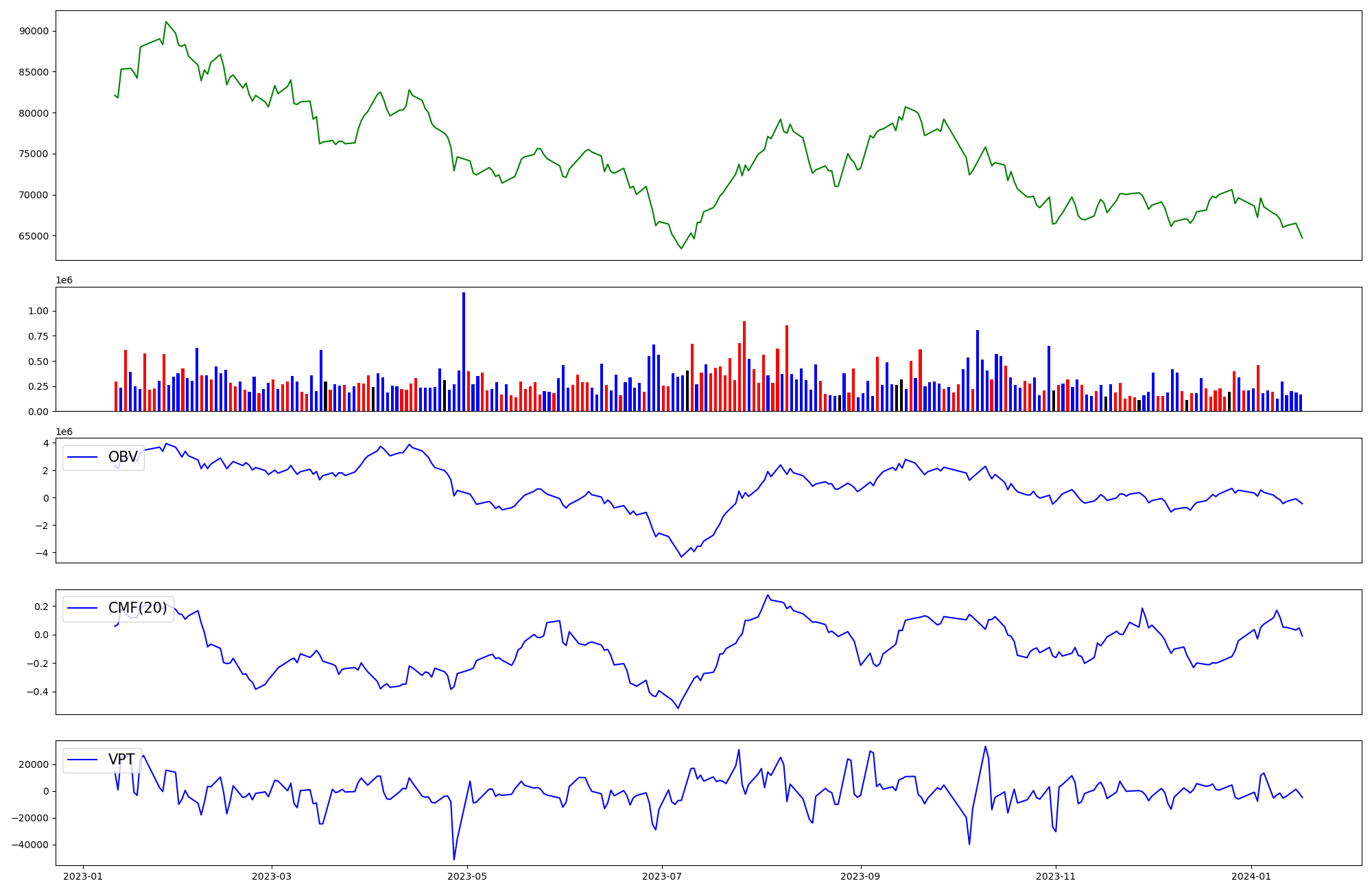 | OBV | CMF | VPT | |