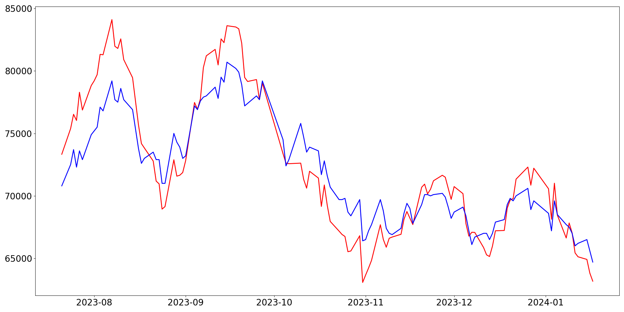 [ - : 실제값(종가) / - : 예측값(종가) ]