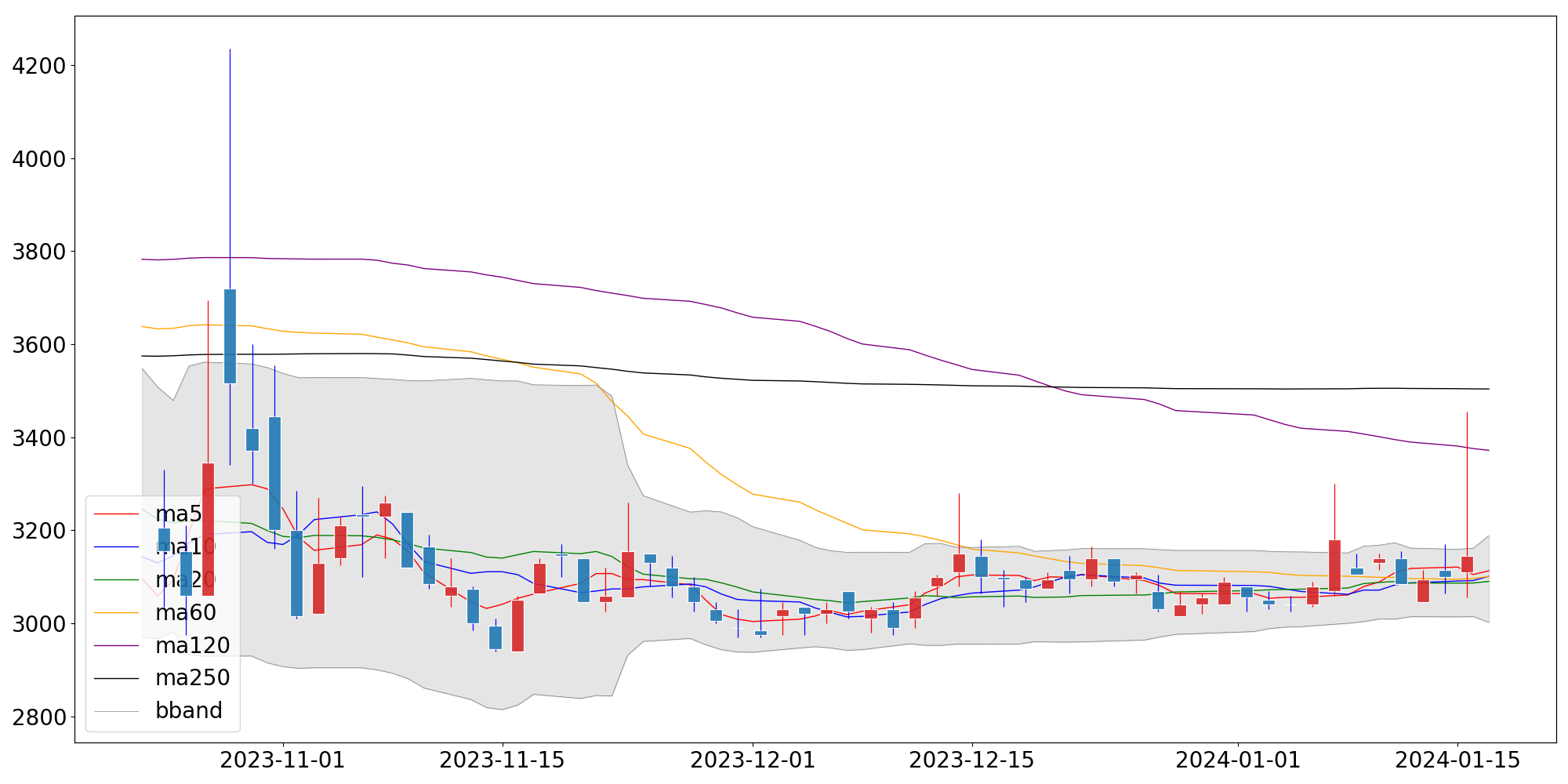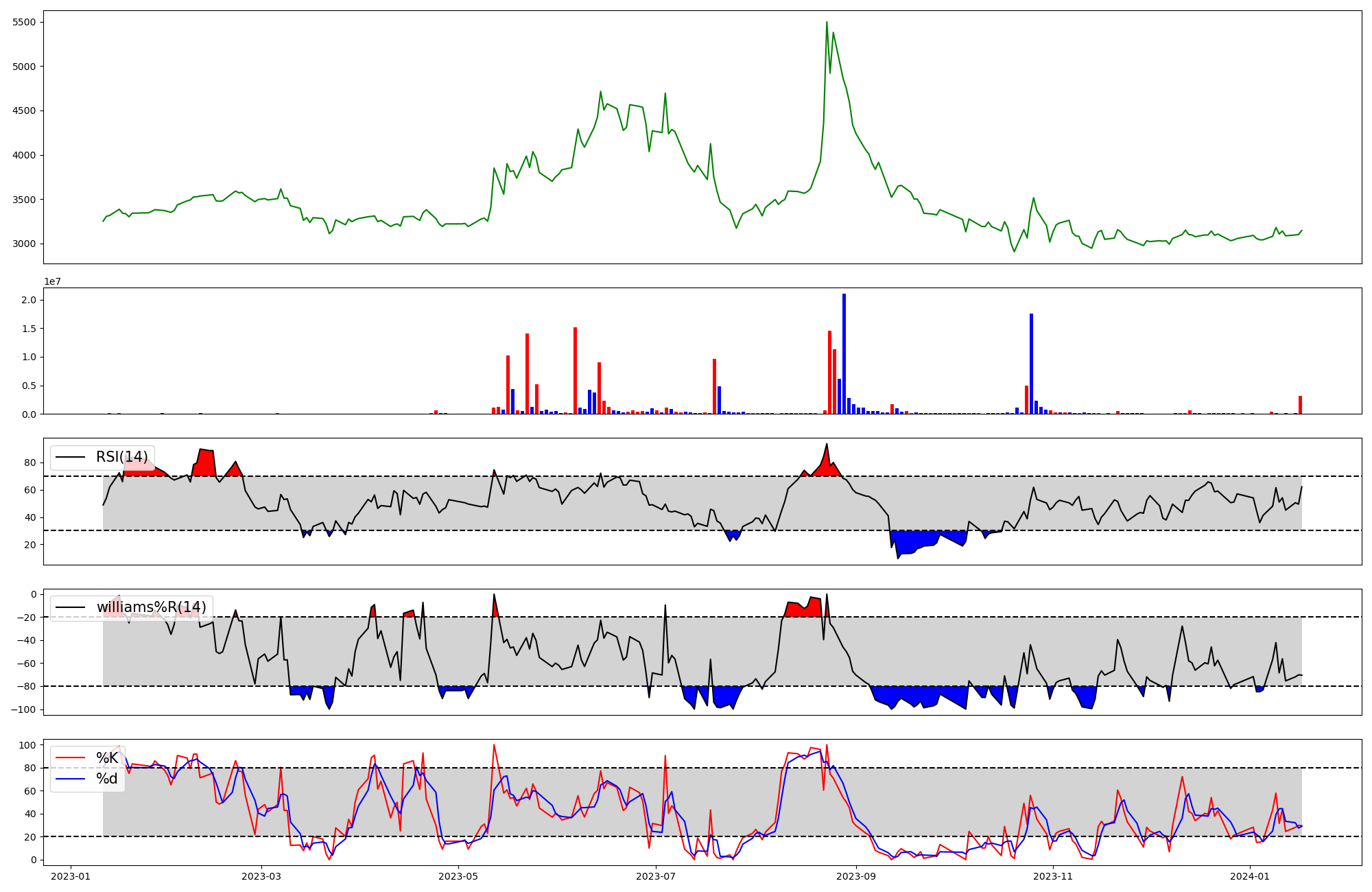 □ 중기 : 현재 종가가 중기(60일) 이동평균값(3,101원)을 상회 하여 중기적 추세 상승 중