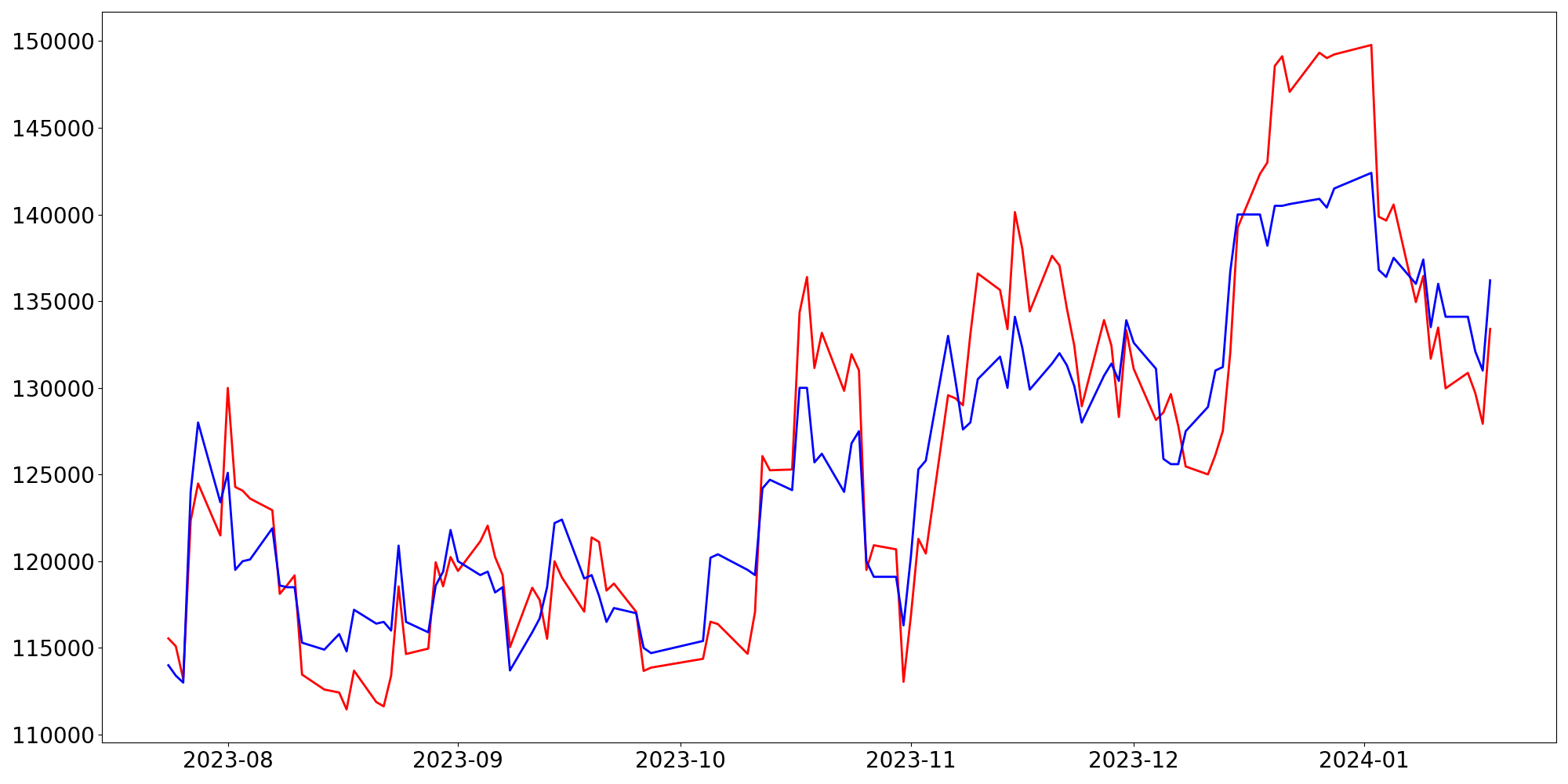 [ - : 실제값(종가) / - : 예측값(종가) ]
