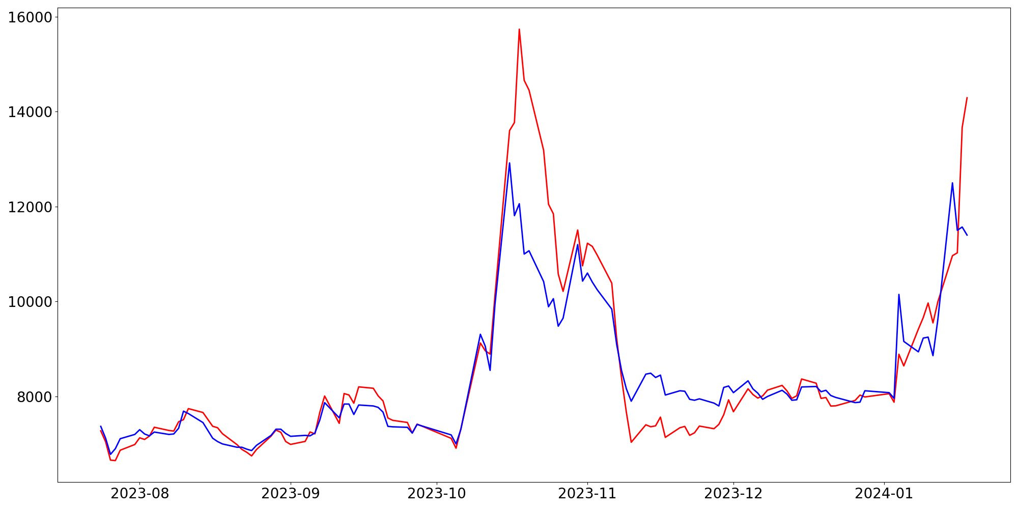 [ - : 실제값(종가) / - : 예측값(종가) ]