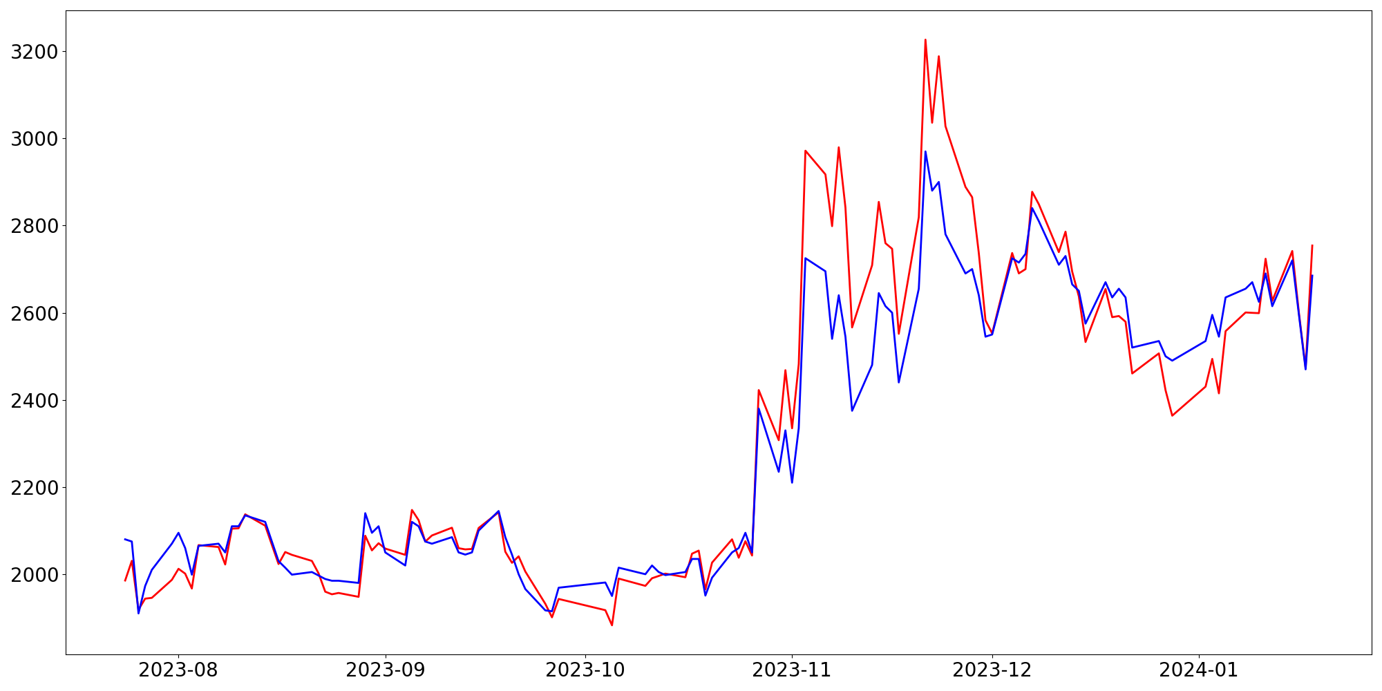 [ - : 실제값(종가) / - : 예측값(종가) ]