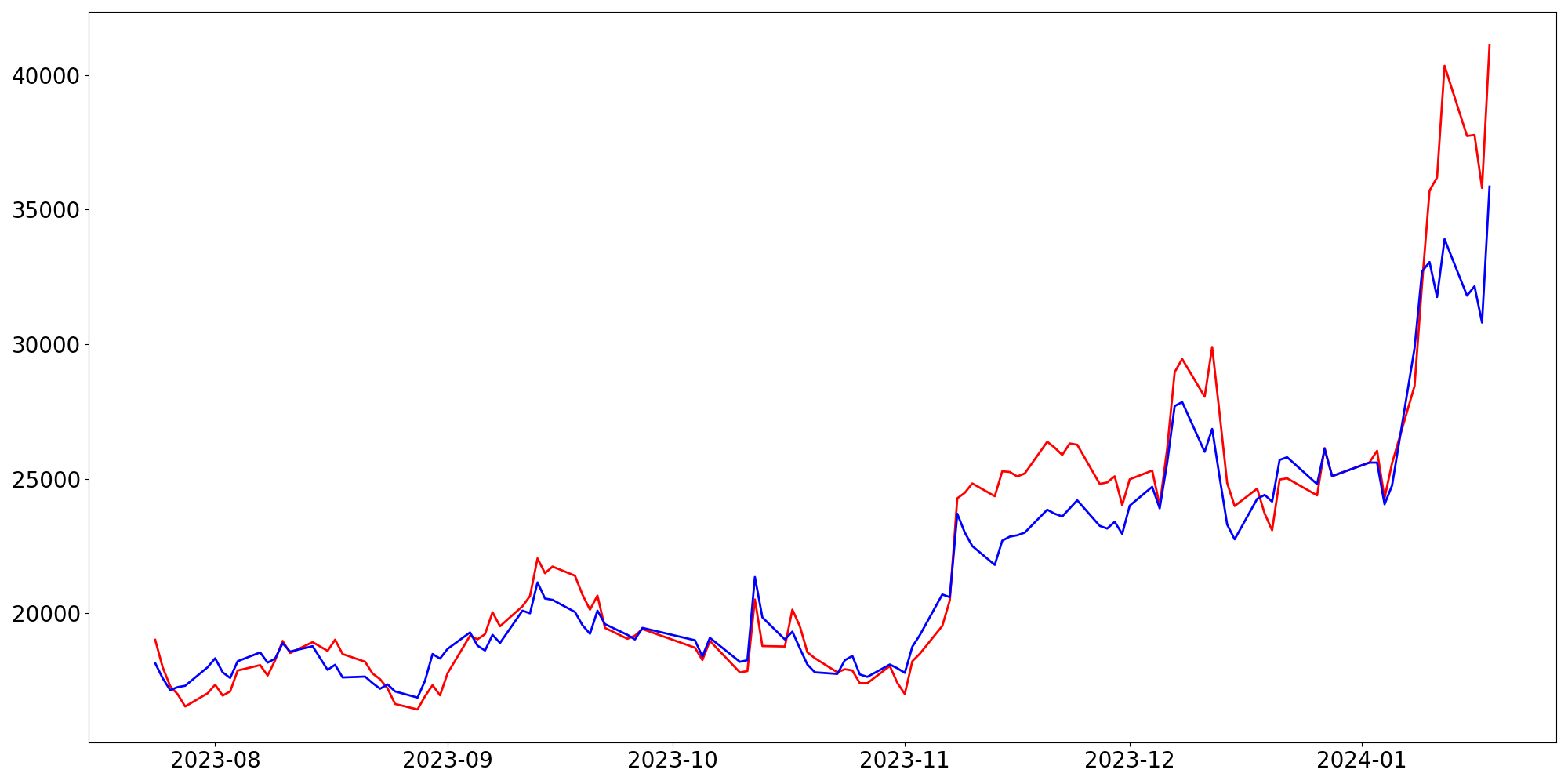 [ - : 실제값(종가) / - : 예측값(종가) ]