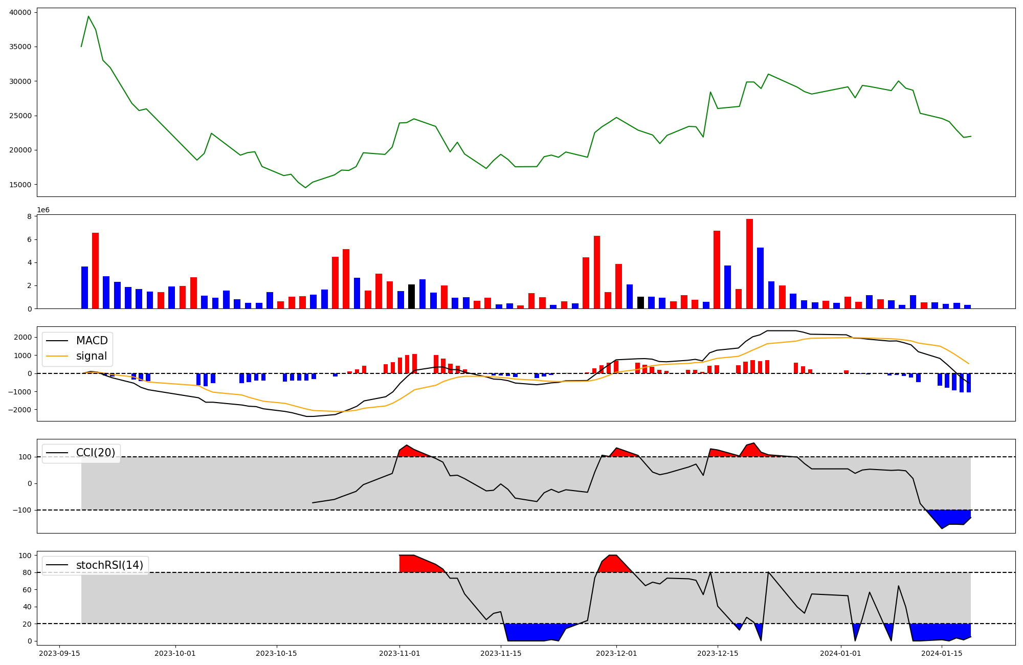 □ 중기 : 현재 종가가 중기(60일) 이동평균값(23,458원)을 하회 하여 중기적 추세 하락 중