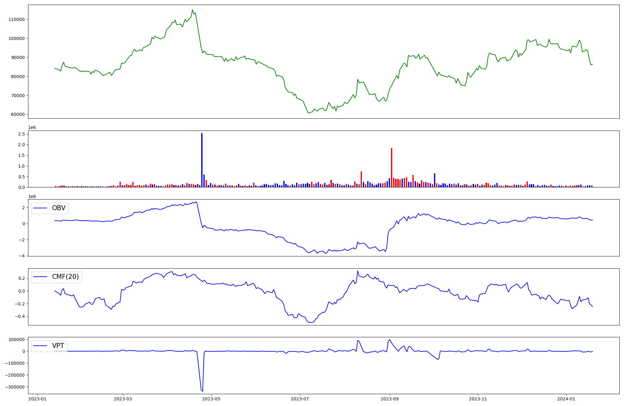 | OBV | CMF | VPT | |