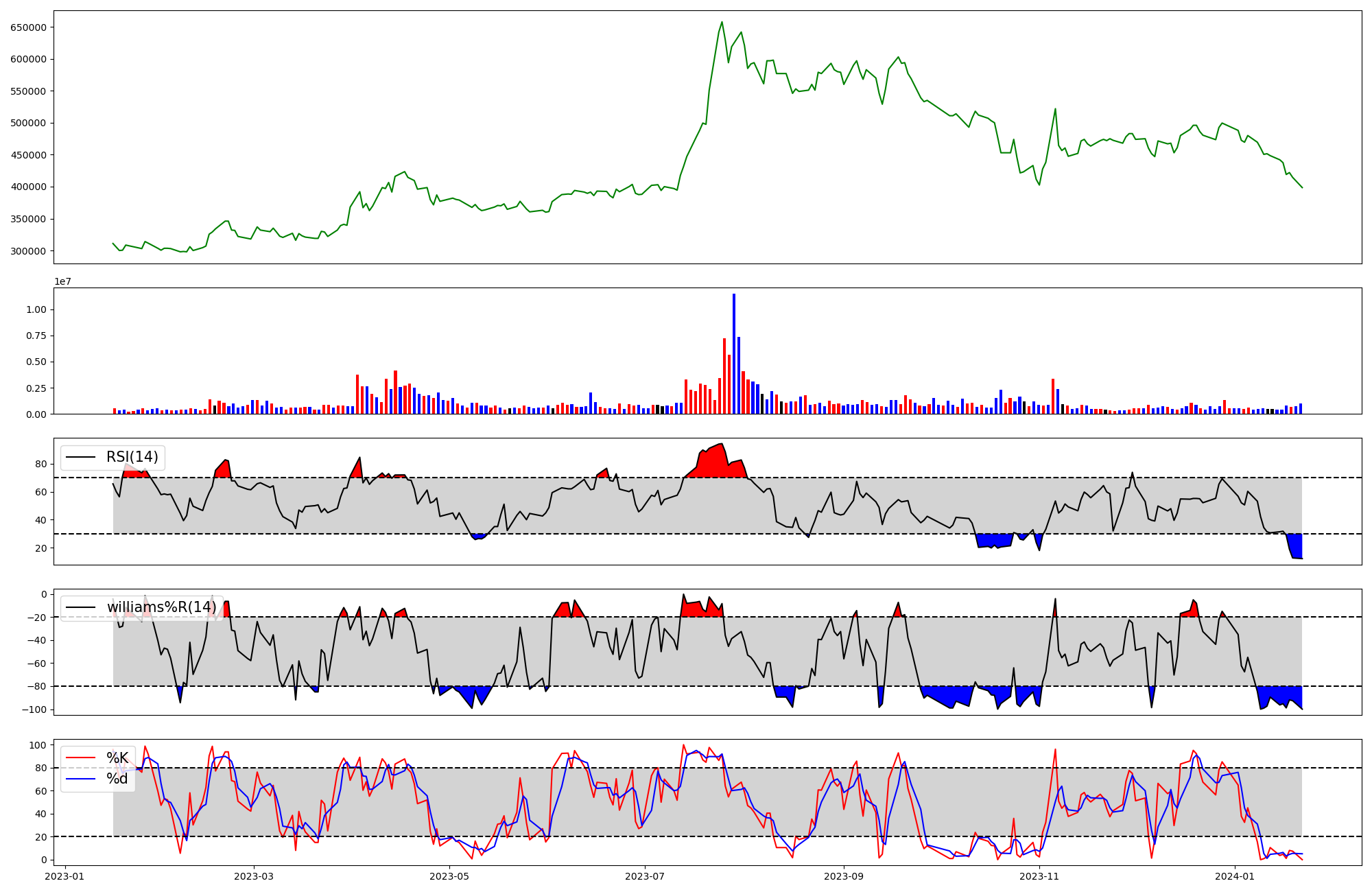 □ 오늘의 종가 : 398,500 (-16,000, -3.86%)