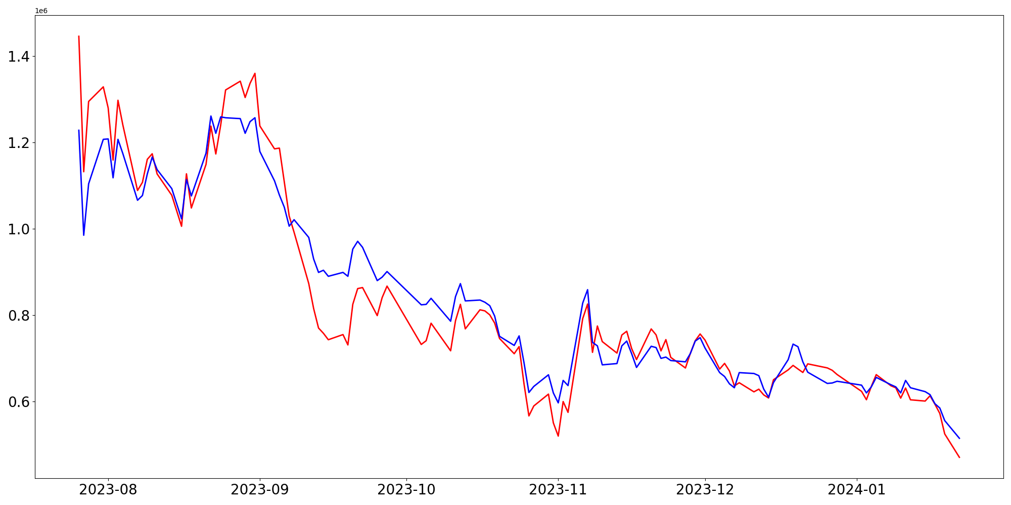 [ - : 실제값(종가) / - : 예측값(종가) ]