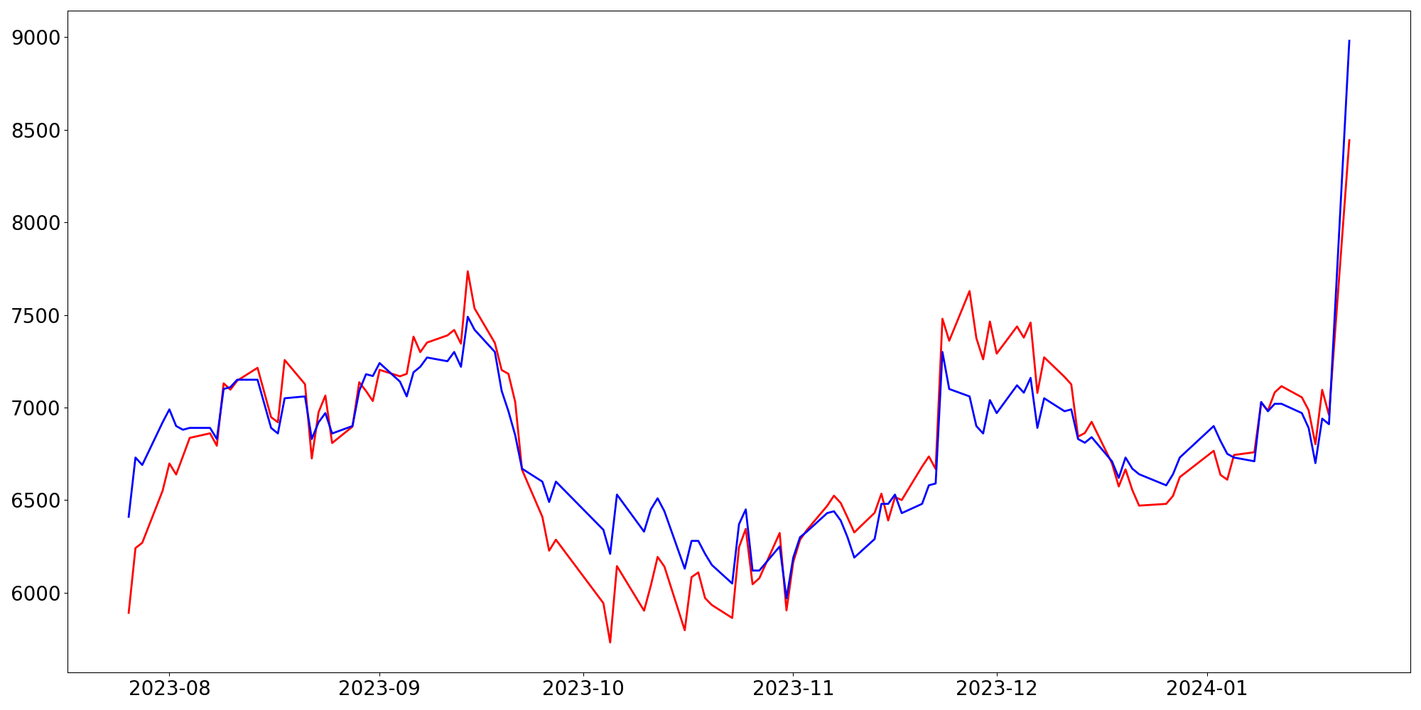 [ - : 실제값(종가) / - : 예측값(종가) ]