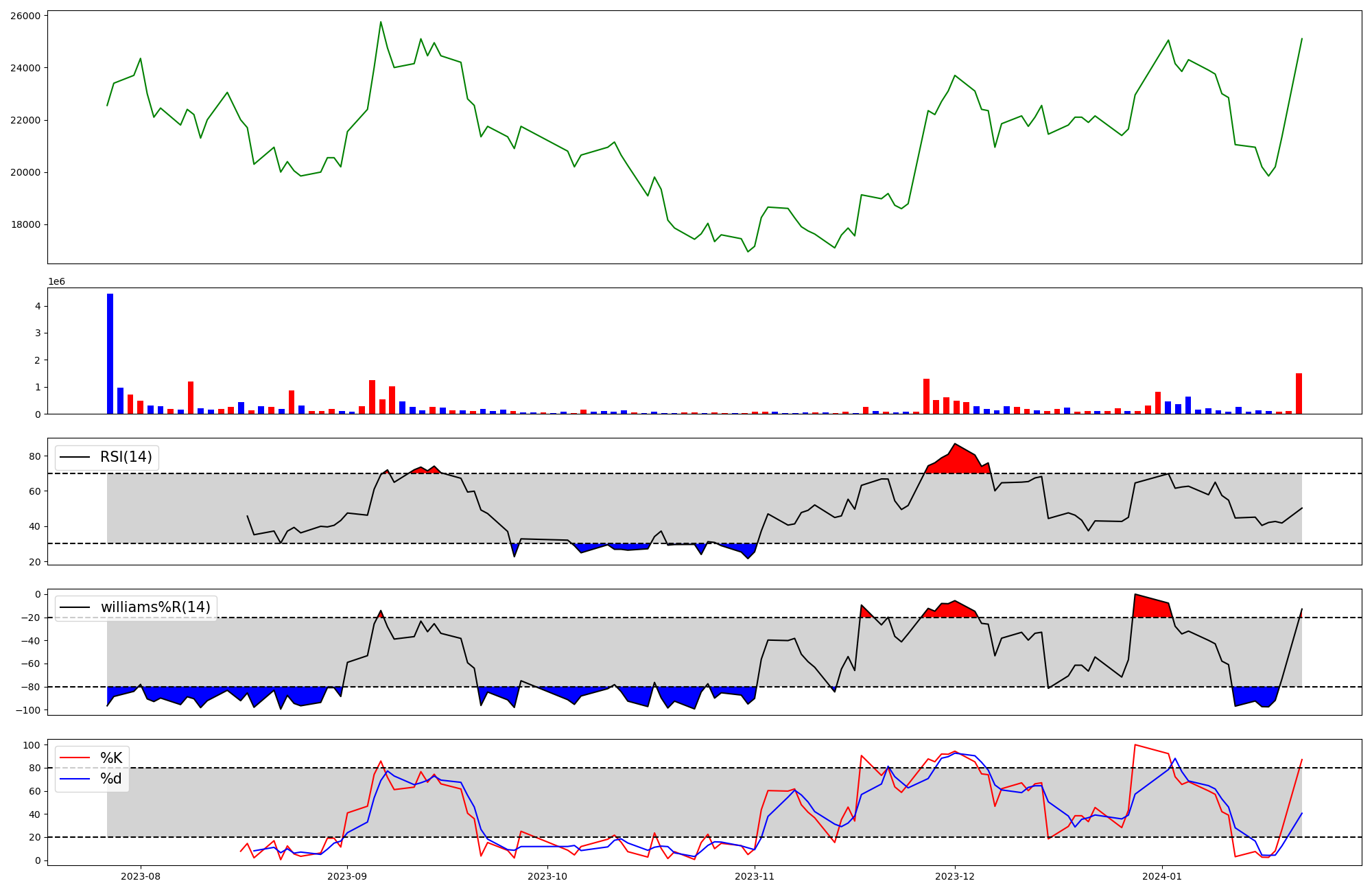 □ 장기 : 현재 종가가 장기(250일) 이동평균값(nan원)을 상회 하여 장기적 추세 상승 중