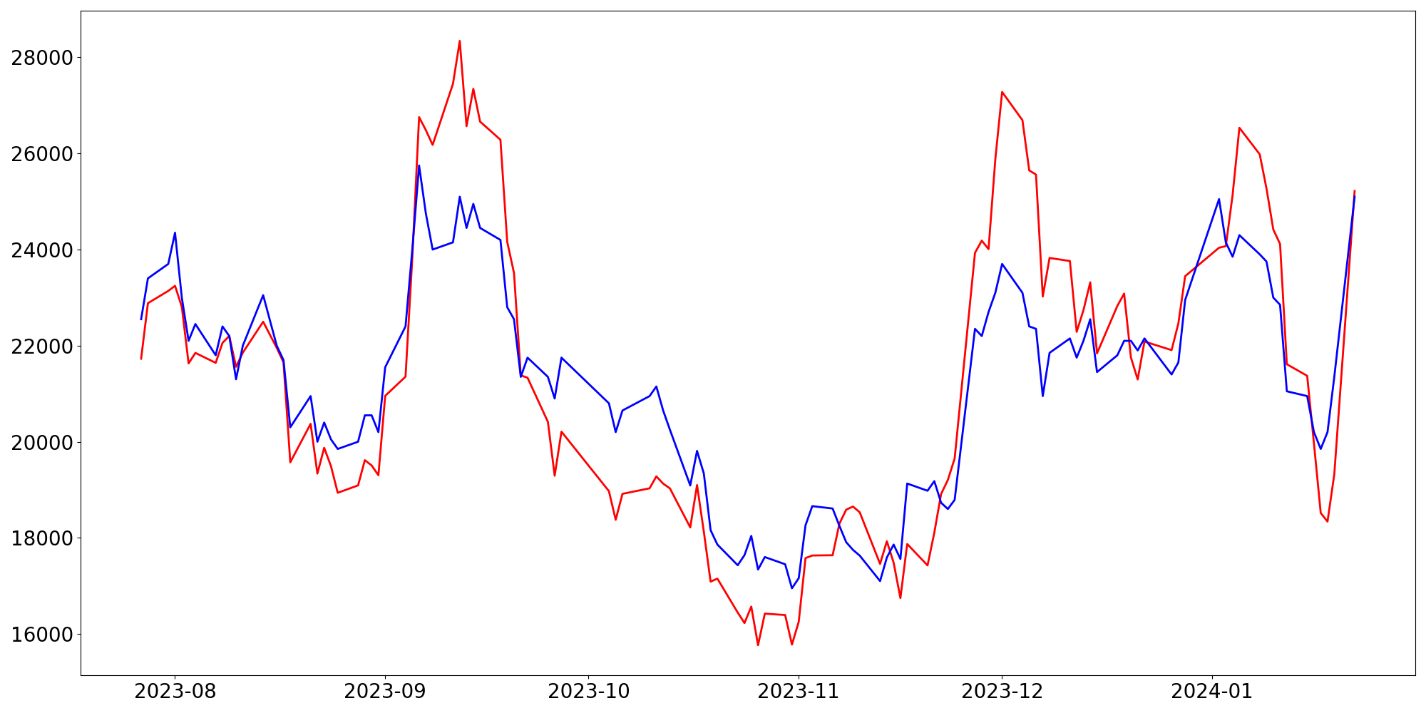 [ - : 실제값(종가) / - : 예측값(종가) ]