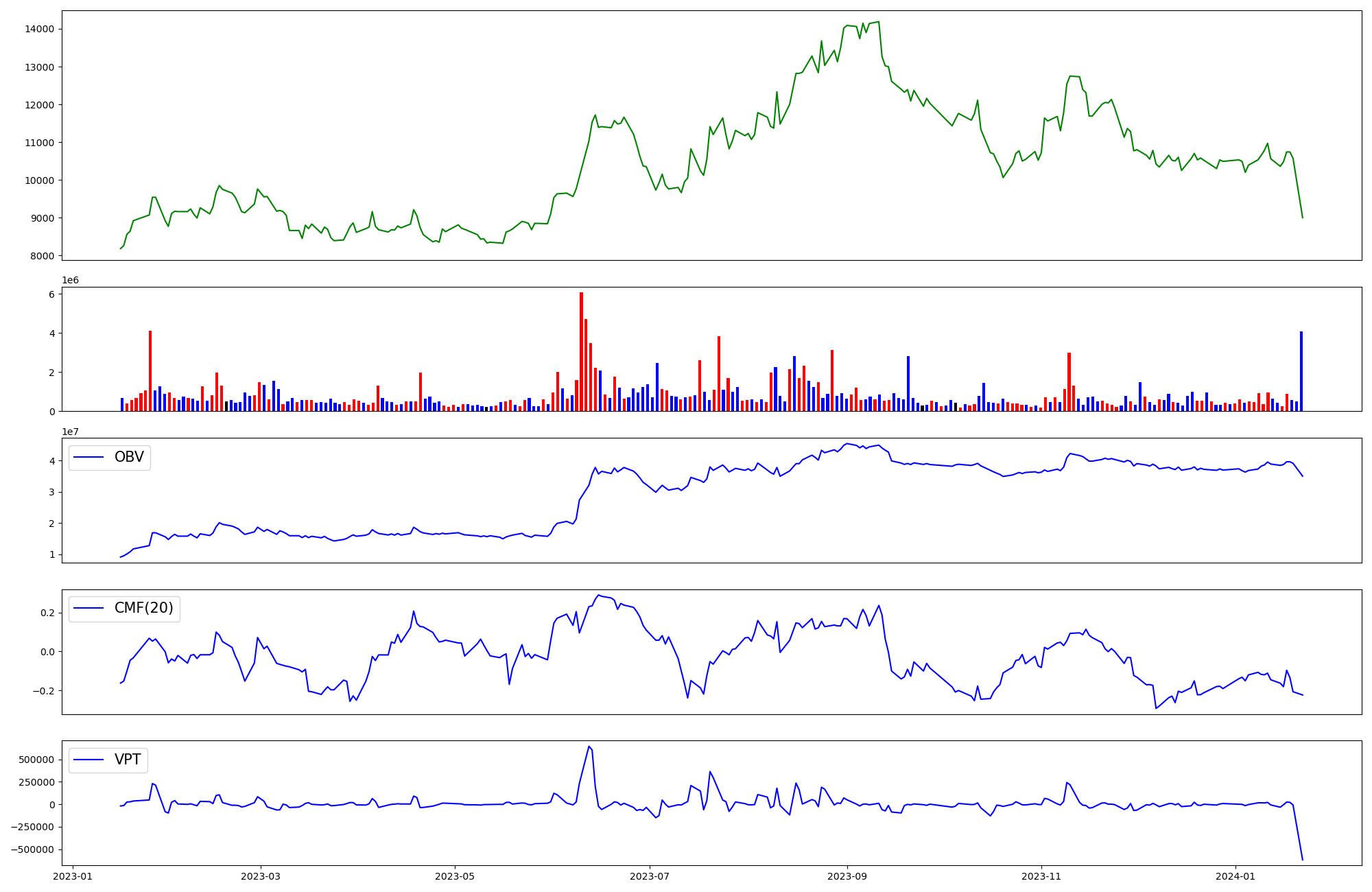 | OBV | CMF | VPT | |