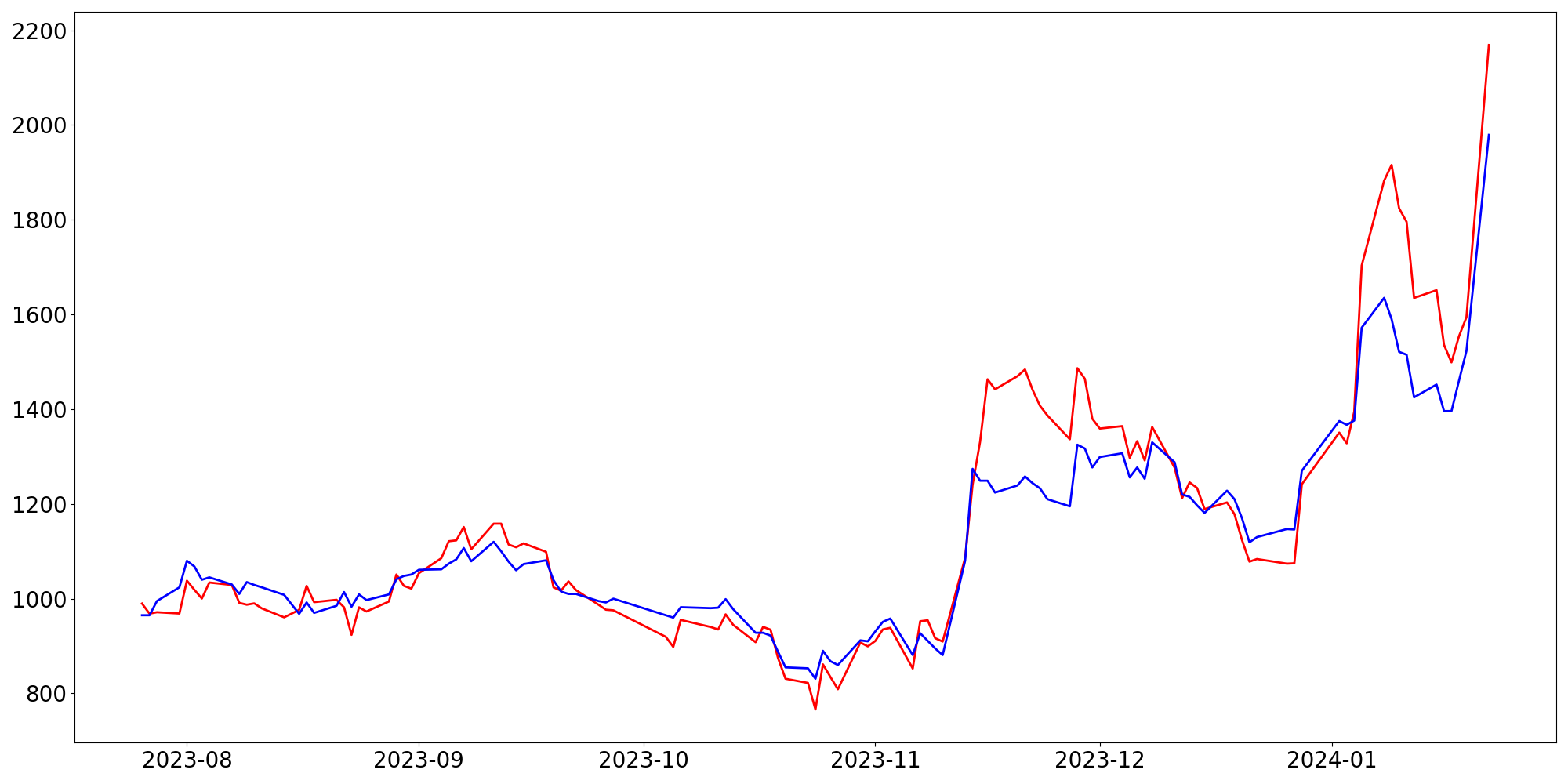 [ - : 실제값(종가) / - : 예측값(종가) ]