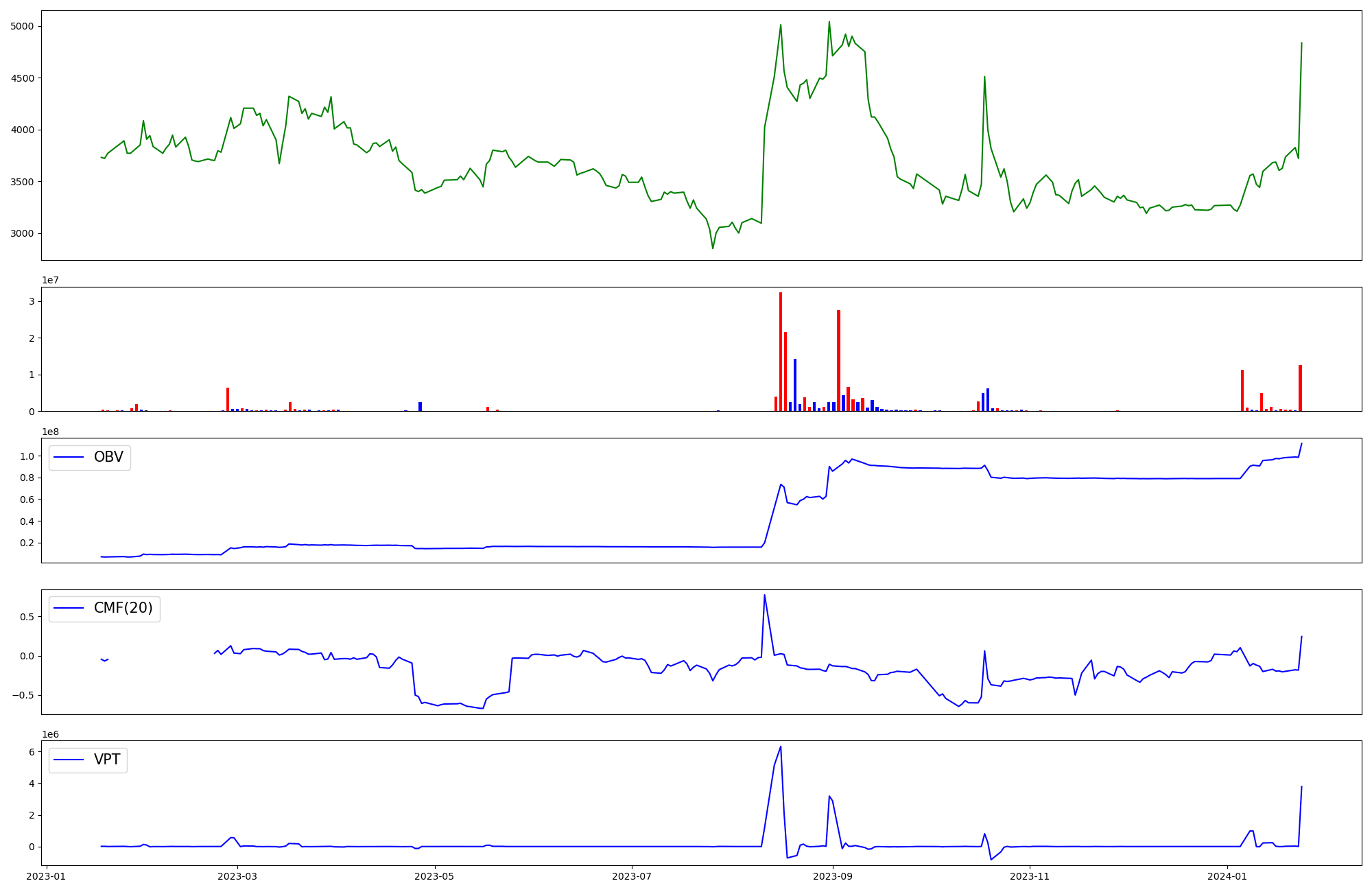 | OBV | CMF | VPT | |