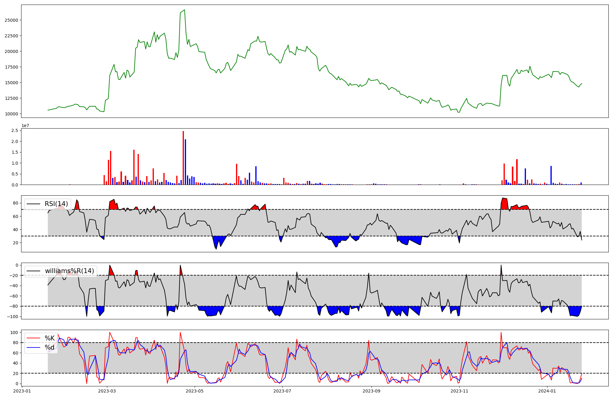 □ 중기 : 현재 종가가 중기(60일) 이동평균값(14,257원)을 상회 하여 중기적 추세 상승 중