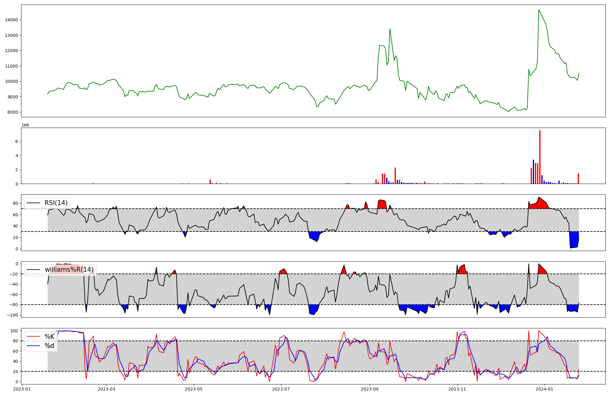 | RSI | Williams %R | stochastic(%K) | |