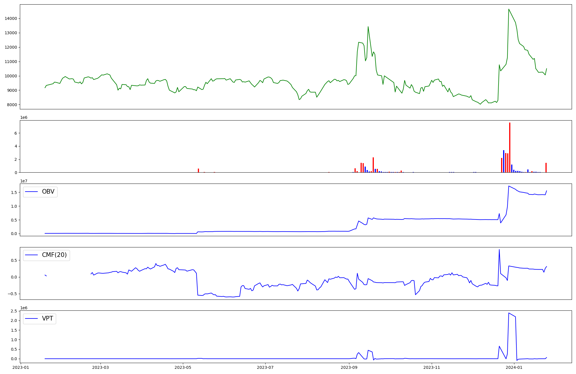 | OBV | CMF | VPT | |